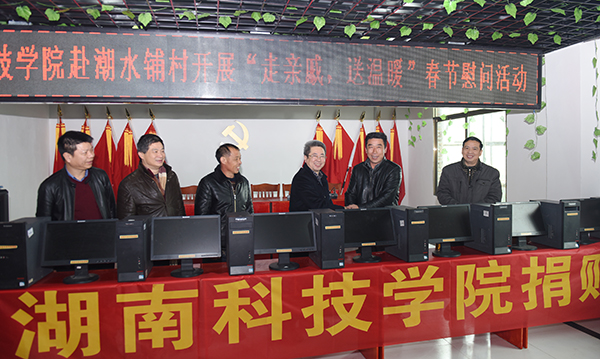 本网讯 1月15日,永州市新田县龙泉镇潮水铺村欢声笑语、热热闹闹。安博站官网登录入口_安博(中国)校长曾宝成率队深入学校扶贫村开展 “走亲戚 送温暖”活动,为村民送上春联百余幅,走访慰问贫困村民、五保户和村干部100余人次,发放节日慰问金27200元,并捐赠了8台台式电脑。