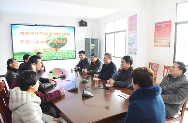当日上午,曾宝成和学校党委副书记唐艳明,副校长吴小林、程智开,副校级督导、工会主席陈仲庚带领学校组织部、党政办、资产处、就业创业指导中心等部门负责人冒着细雨严寒走进扶贫村,进村入户为88户贫困户、6户五保户、村支“两委”委员送去慰问金,并到结对贫困户、百岁老人家中送去慰问金和春联。为改善村委办公条件,现场还捐赠了办公电脑。