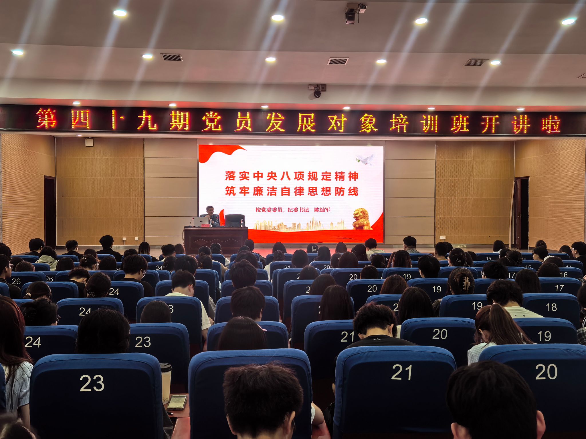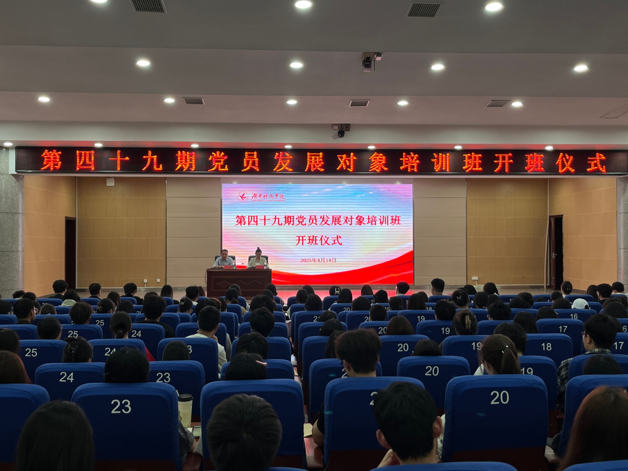 本网讯(通讯员 雷琼)4月14日,学校第四十九期党员发展对象培训班开班仪式在潇湘大讲堂举行,组织部、党校相关负责人作开班讲话,各教学学院的209名党员发展对象参加本次开班仪式。
