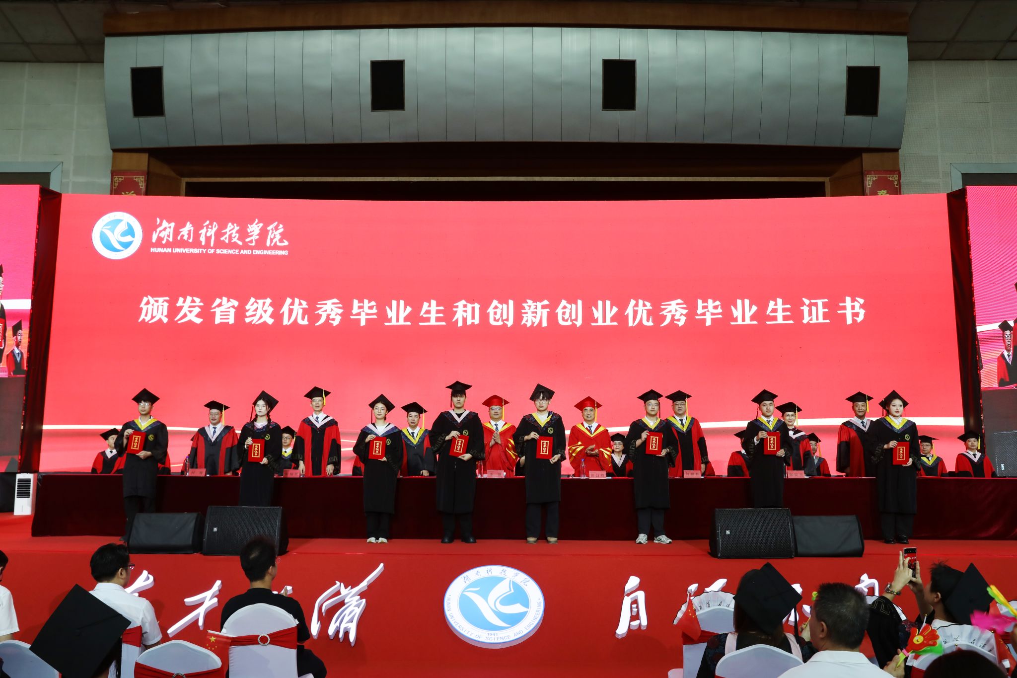 校领导为优秀毕业生代表颁发省级优秀毕业生和创新创业优秀毕业生证书。