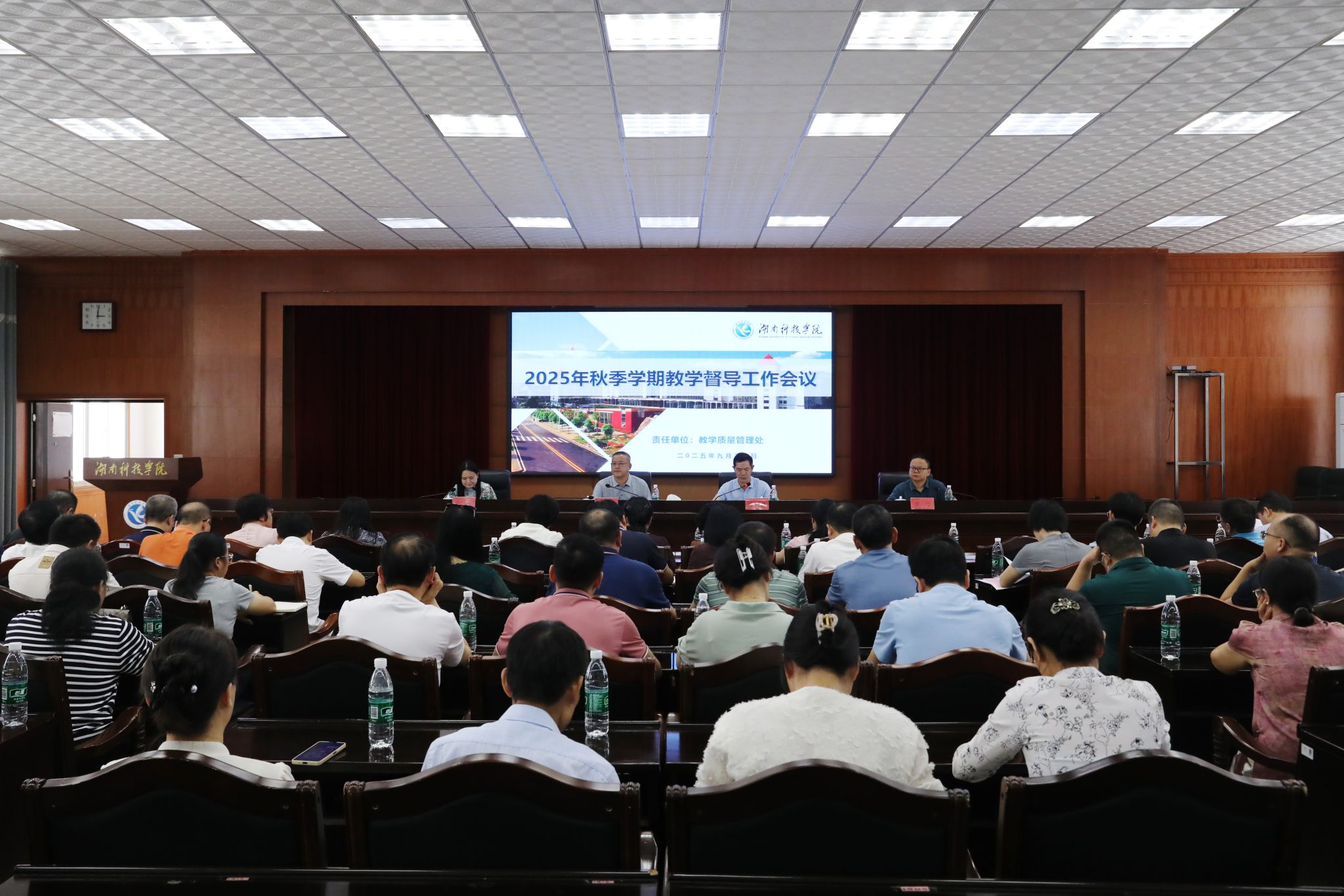教学质量管理处处长李文从推进教学督查、强化OBE理念落地、深化质量文化建设、推动校院两级督导联动等四个维度,解读了本学期教学督导工作重点。教务处处长张剑补充安排秋季学期教学重点工作,强调要以评估标准为导向,做好教学保障。