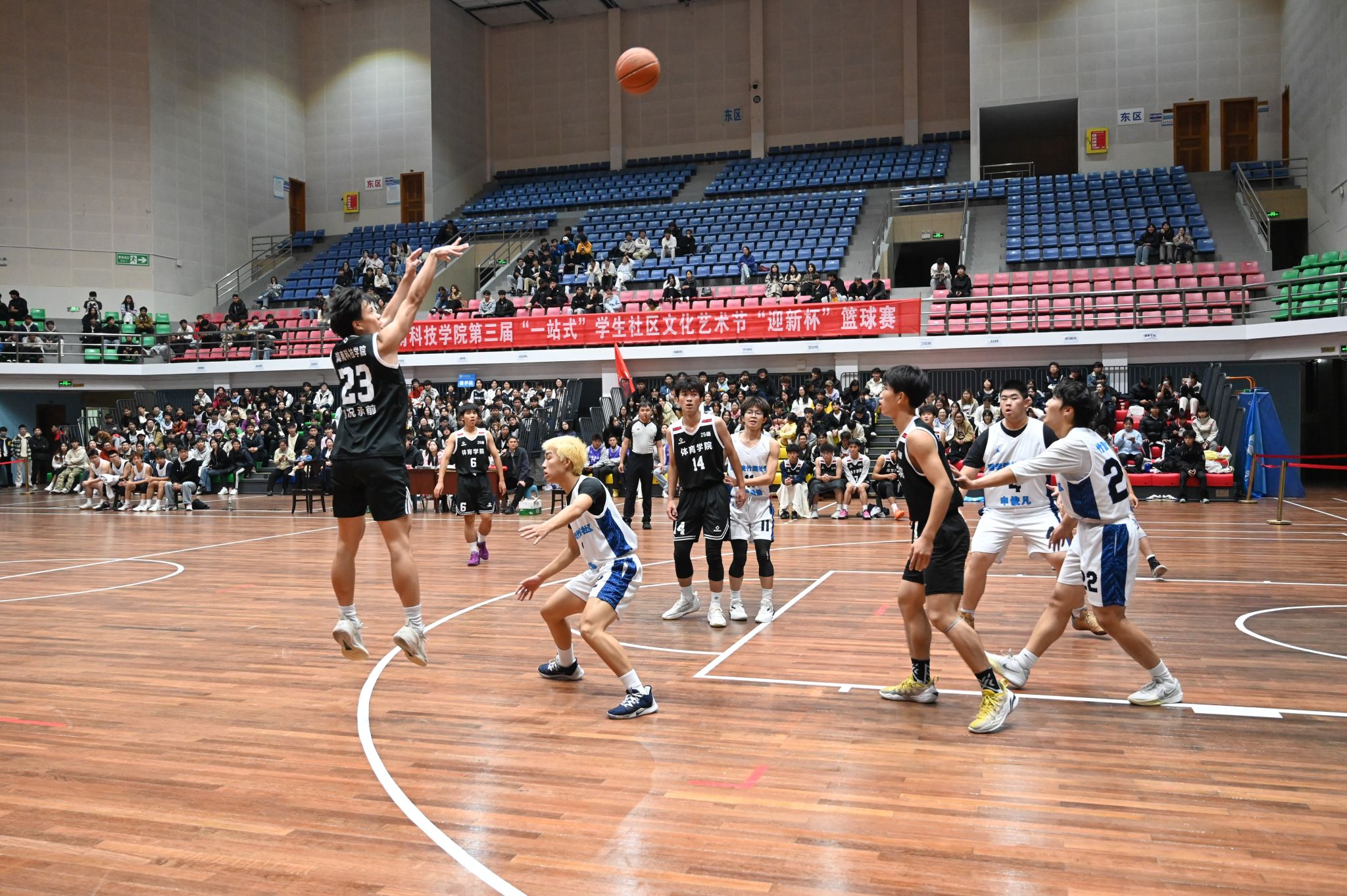 经过激烈角逐,荷园社区一舍凭借稳定的发挥和默契的配合,以71:26的悬殊比分战胜对手,斩获女子揭幕赛胜利;松园社区二舍与对手展开胶着对抗,最终凭借关键时刻的精准投篮,以76:65的比分赢得男子揭幕赛胜利。