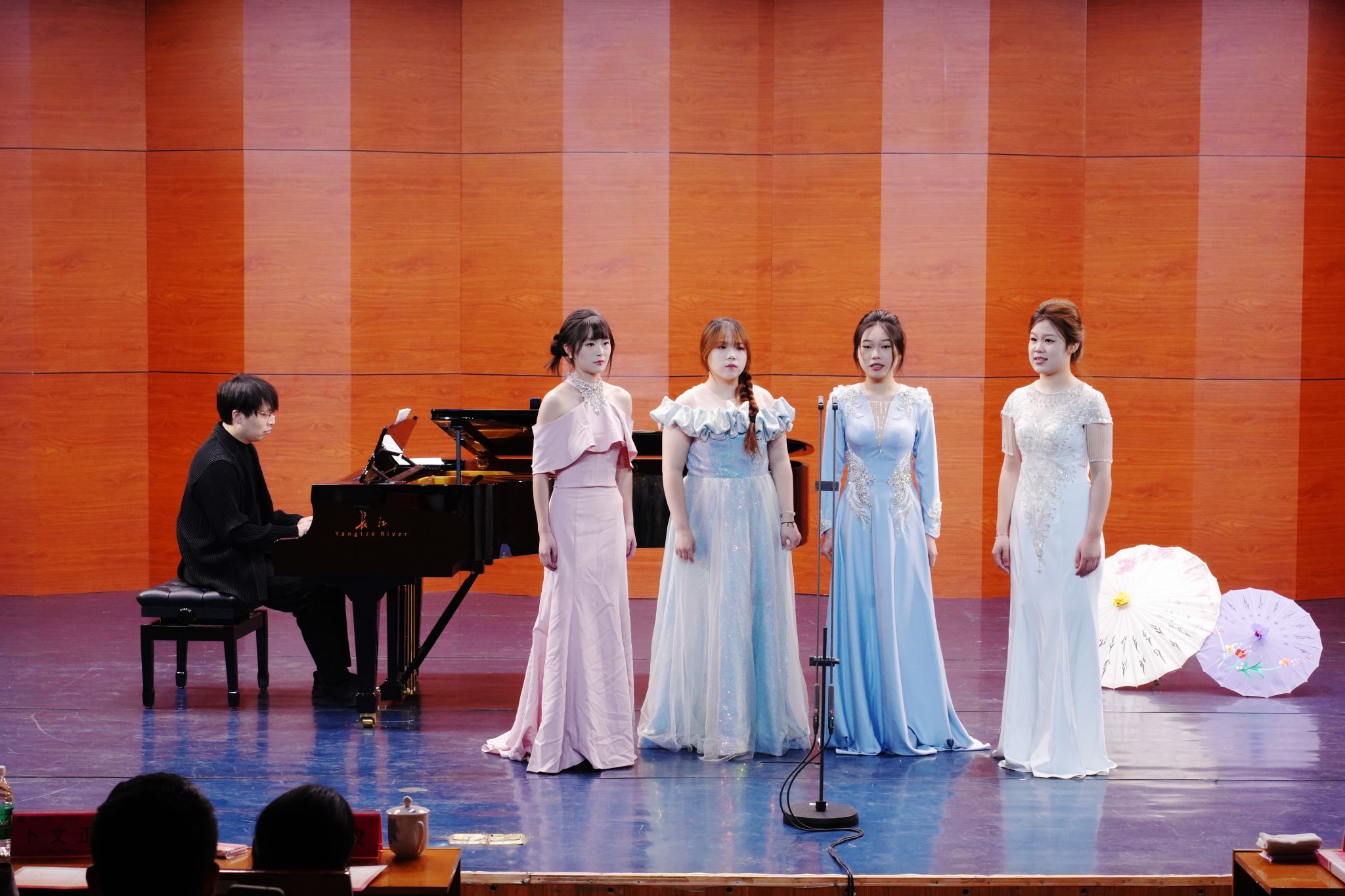 音乐会现场,从柳宗元谪居永州时写下的《零陵早春》和《渔翁》,到气壮山河的《满江红》,以及理学开山周敦颐的散文《爱莲说》,精心筛选的19首曲目全部由我校音乐与舞蹈学院学生担纲演唱,我校恩斯特教授(Prof. Ernst Nolting-Hauff)和武汉音乐学院专任教师杜亦秋担任钢琴伴奏,这种强烈的“沉浸感”与“代入感”,让传统文化变成“耳畔的旋律”。“歌声像一座桥,让我直接走进了诗人的情感世界里。”财管2401班学生谷利梅在观演后说。