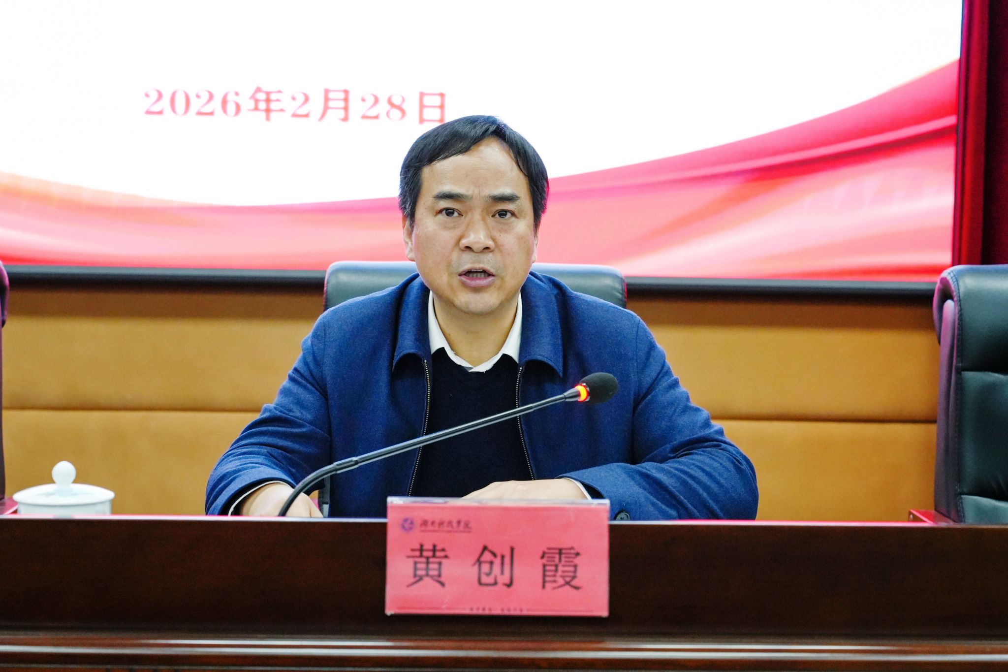本网讯(记者 向薛峰 摄影 谢志豪)2月28日,学校召开2026年新学期开学工作会议,部署推进重点工作。党委副书记、校长黄创霞出席并讲话,全体校领导以及中层干部参加会议。