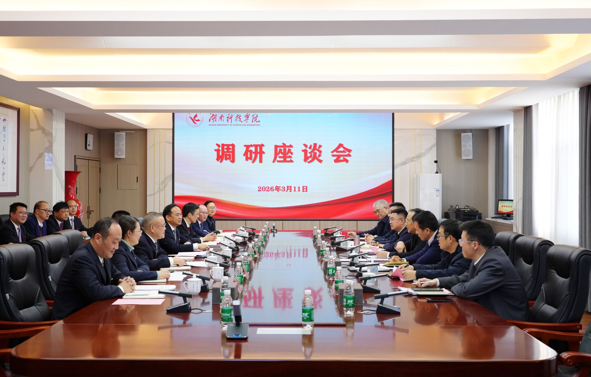 湖南省教育厅相关处室负责人,学校相关职能部门和学院负责人陪同调研或参加座谈。