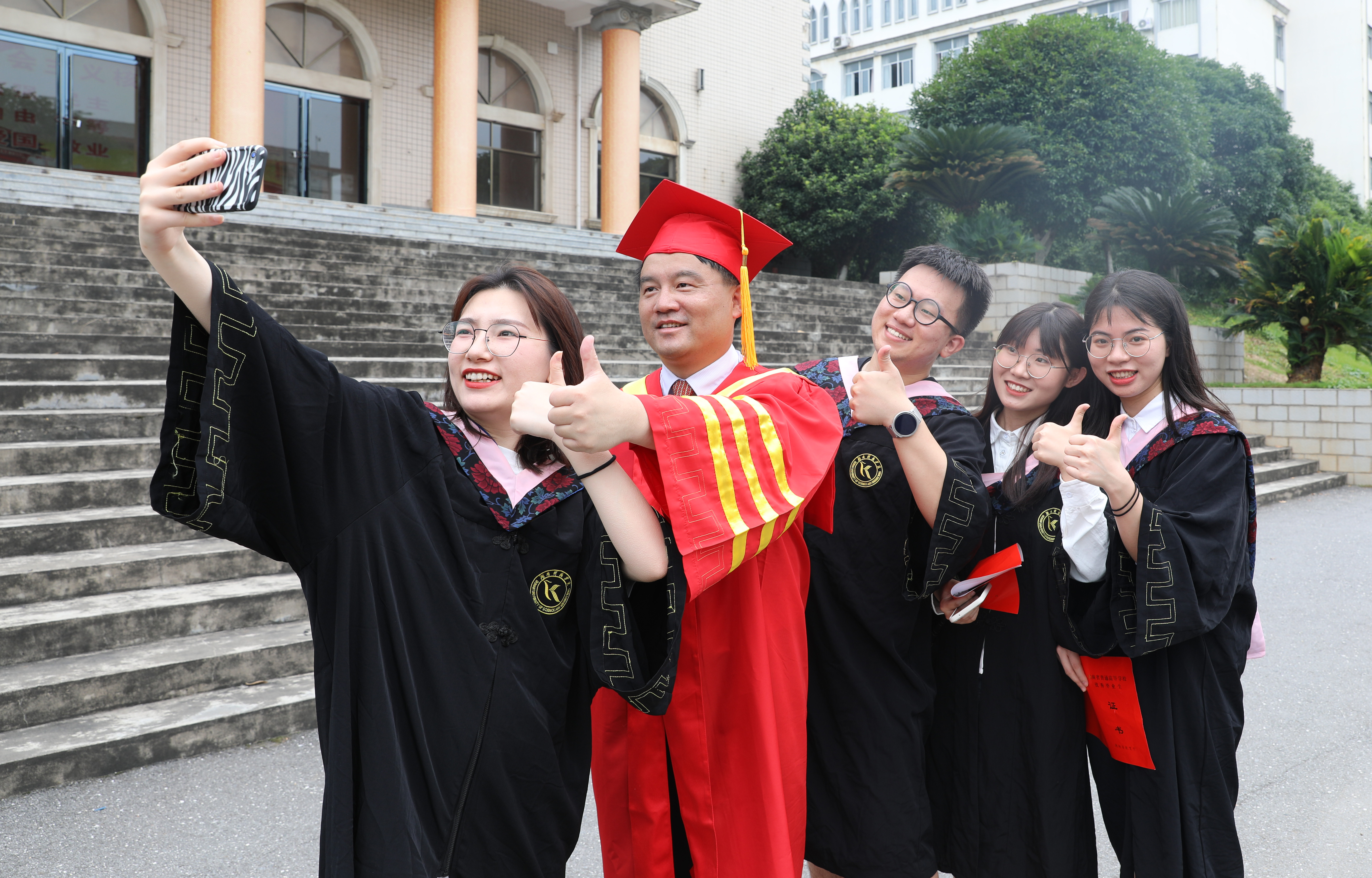 全体校领导和与会师生全体起立,齐唱《潇湘之歌》,用持久不息的掌声和爱生如子的深情目送毕业生离开会场,奔赴祖国最需要的地方。校领导与省级优秀毕业生合影留念。