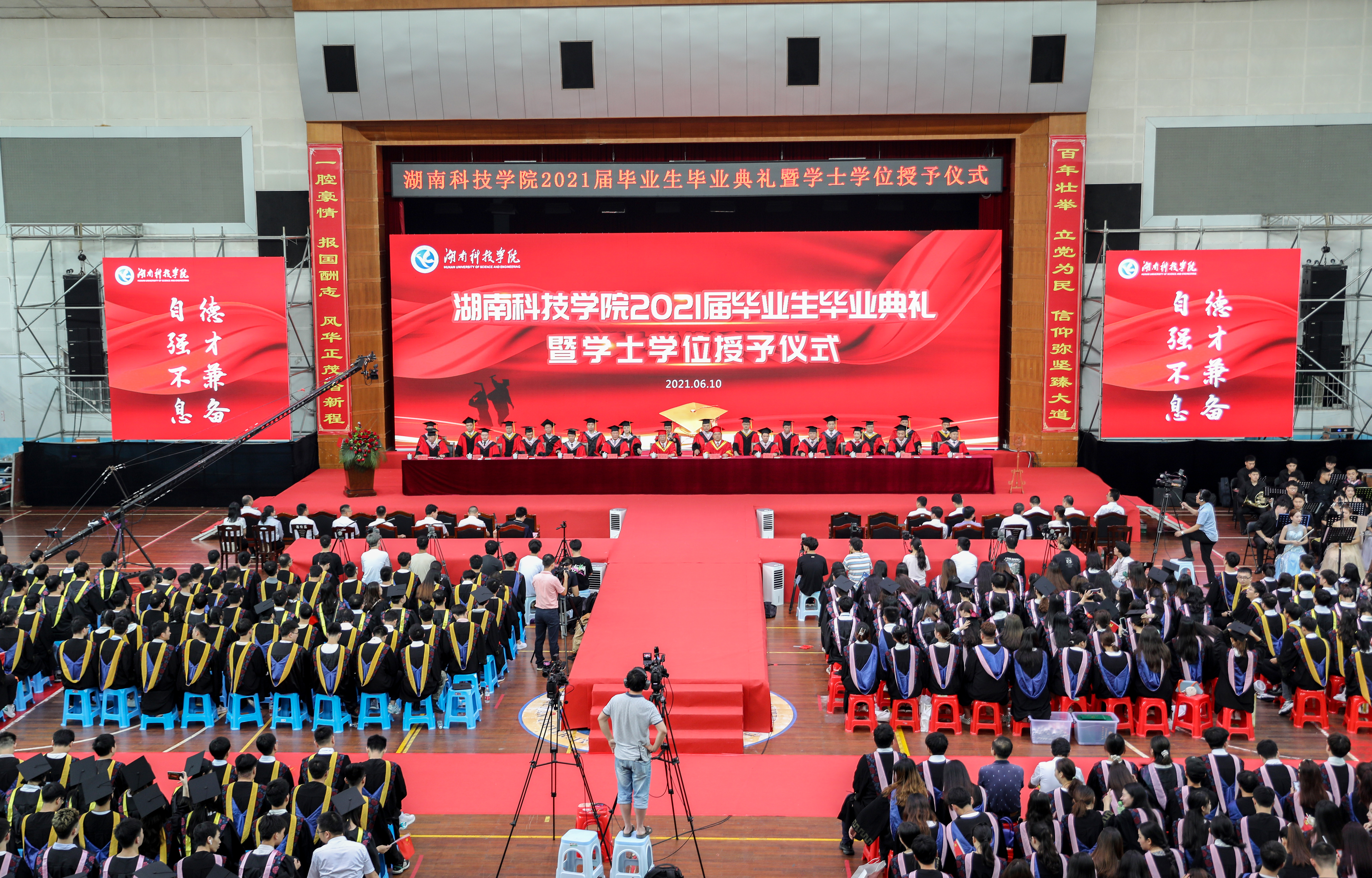 本网讯 百年恰风华,逐梦新征程。6月10日,体育馆内洋溢着依依不舍的温馨气氛,学校在此隆重举行2021届毕业生毕业典礼暨学士学位授予仪式。全体校领导、教师代表与3661名毕业生共同见证高光时刻,共享开启新征程的喜悦。