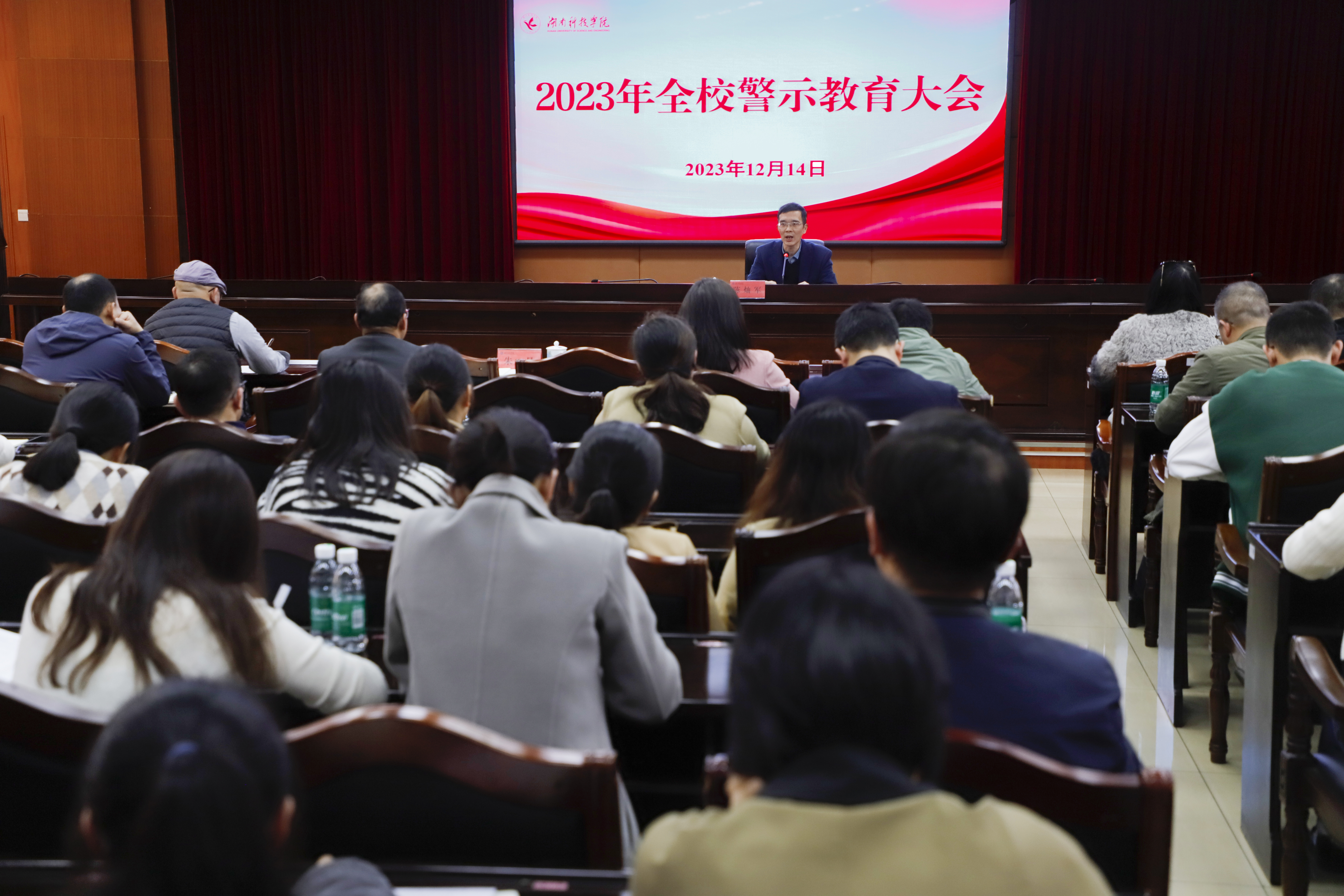 本网讯(通讯员 覃小明)为进一步推动“两带头五整治”纠风防腐专项行动和全省高校“以学谋私”问题专项整治工作,12月14日,学校在行政楼八楼一会议室召开警示教育大会。党委委员、纪委书记陈灿军出席并讲话,全校副科级以上干部和机关教辅全体工作人员参会。会议由纪检监察处副处长朱晶主持。