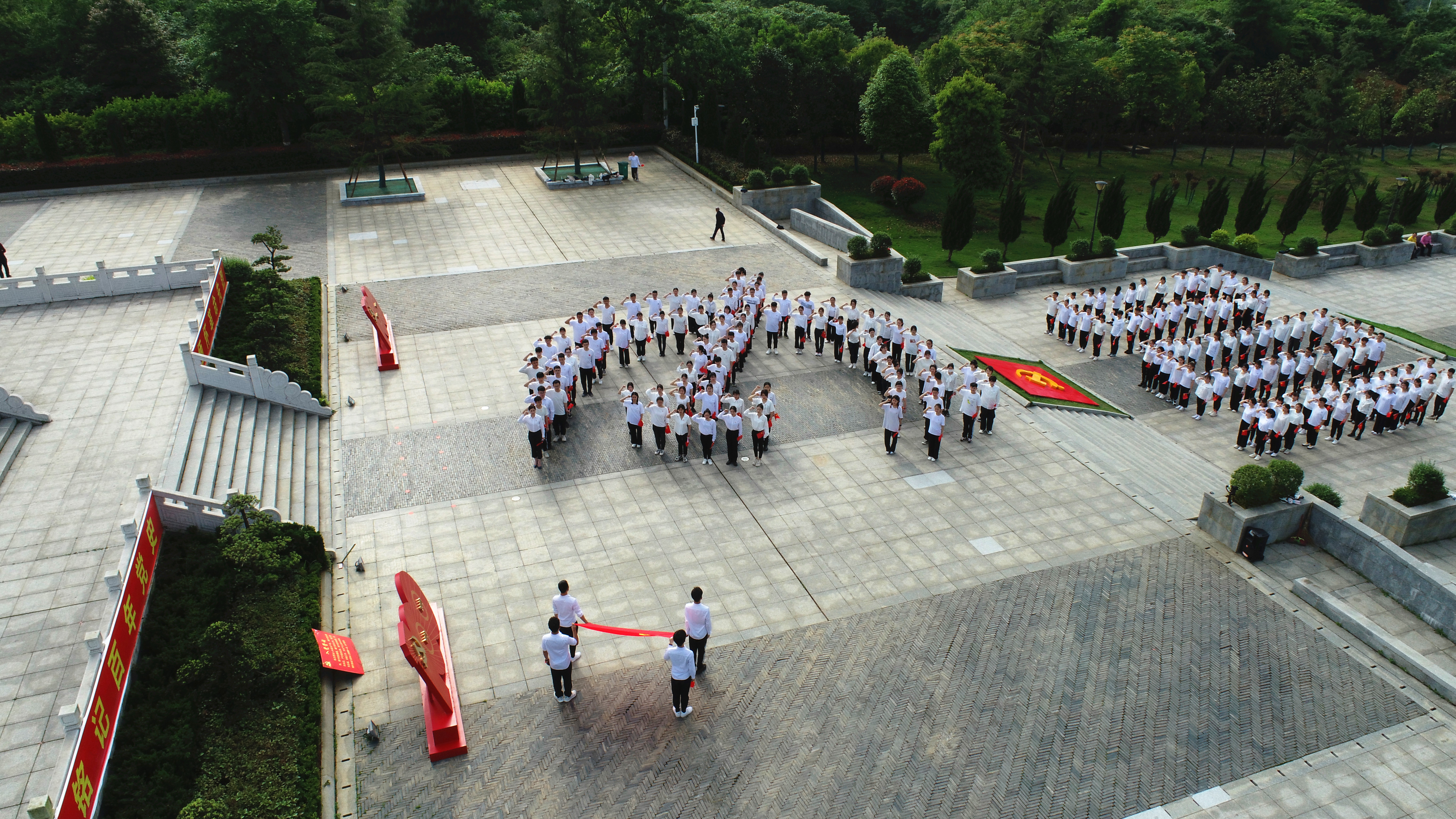 本网讯 “我志愿加入中国共产党,拥护党的纲领……”4月23日下午,学校组织开展“青春向党大学生集体入党宣誓”活动。在永州市烈士纪念园广场前,两百余名大学生摆成党徽和“100”字样的队形,面对庄严而神圣的党旗,铿锵有力、激情昂扬地宣读入党誓词,共同追忆革命先烈的英雄事迹。