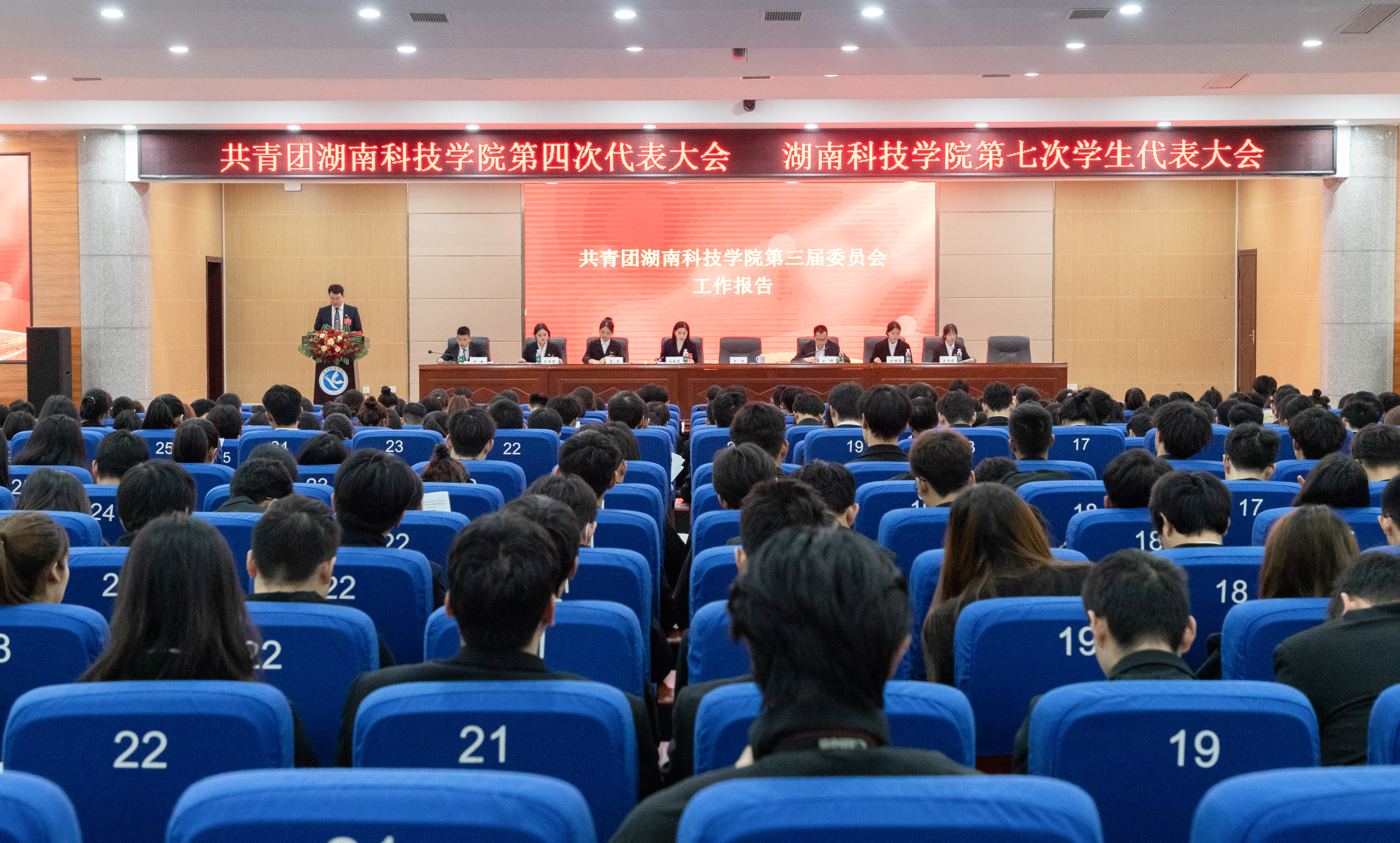 本网讯(记者 刘琴)12月1日—12月2日,学校召开第四次共青团代表大会、第七次学生代表大会。校党委书记李钢,校领导李常健、吴小林、何福林、郑银芳,党委委员、组织部长杨涛,共青团永州市委书记冯志多,学校相关职能部门负责人以及各教学学院党总支书记、副书记出席会议。