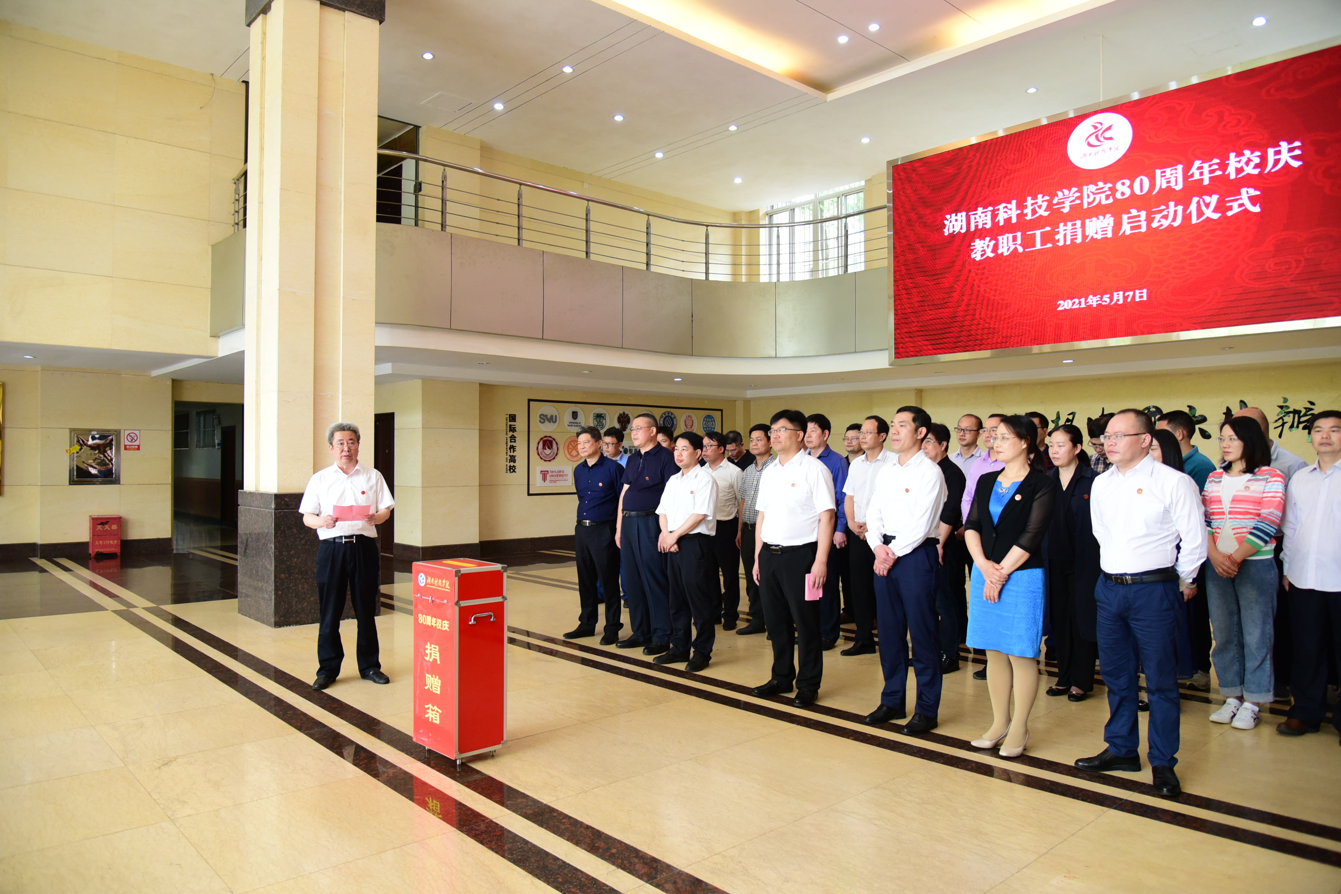 本网讯 (实习记者 周志薇)5月7日,学校80周年校庆教职工捐赠仪式正式启动。校党委书记曾宝成、校长李钢,副校长李常健、吴小林、何福林、郑银芳、何海,校级领导唐艳明等在家领导出席启动仪式并带头捐资。仪式由李钢主持。