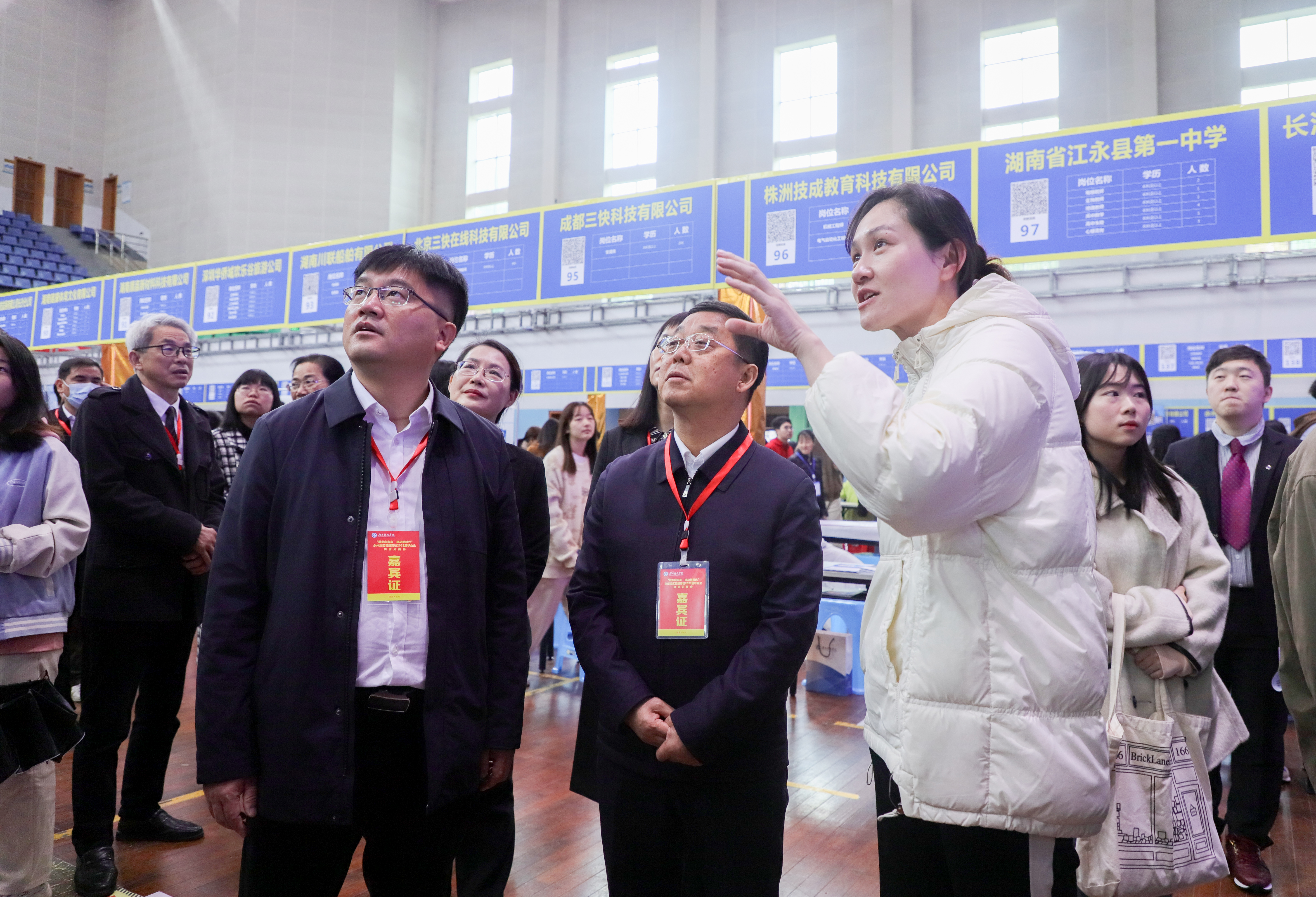 李钢在讲话中指出,就业是最大的民生。近年来,学校始终把促进大学生就业、提高大学生就业质量作为学校的重点工作之一,通过访企拓岗促就业、全员促就业等形式多渠道、全方位促进大学生就业,先后荣获全国毕业生就业典型经验高校、湖南省大学生就业创业示范校,七次荣获湖南省普通高等学校就业创业工作“一把手工程”优秀单位。希望以此次招聘会为契机,深化产教融合,促进教育链、人才链、产业链和创新链有机衔接,全面提高人才培养质量,助推学校高质量发展,实现多方共赢。希望广大毕业生树立正确的择业观、就业观,将个人的理想与社会需求相结合,让“脚先着地”,继承中国青年“永久奋斗”的传统,不负时代不负国,不负青春不负己,在仰望星空中追寻诗和远方,在时代大潮中找准奋进坐标,在脚踏实地中一步一步实现梦想。