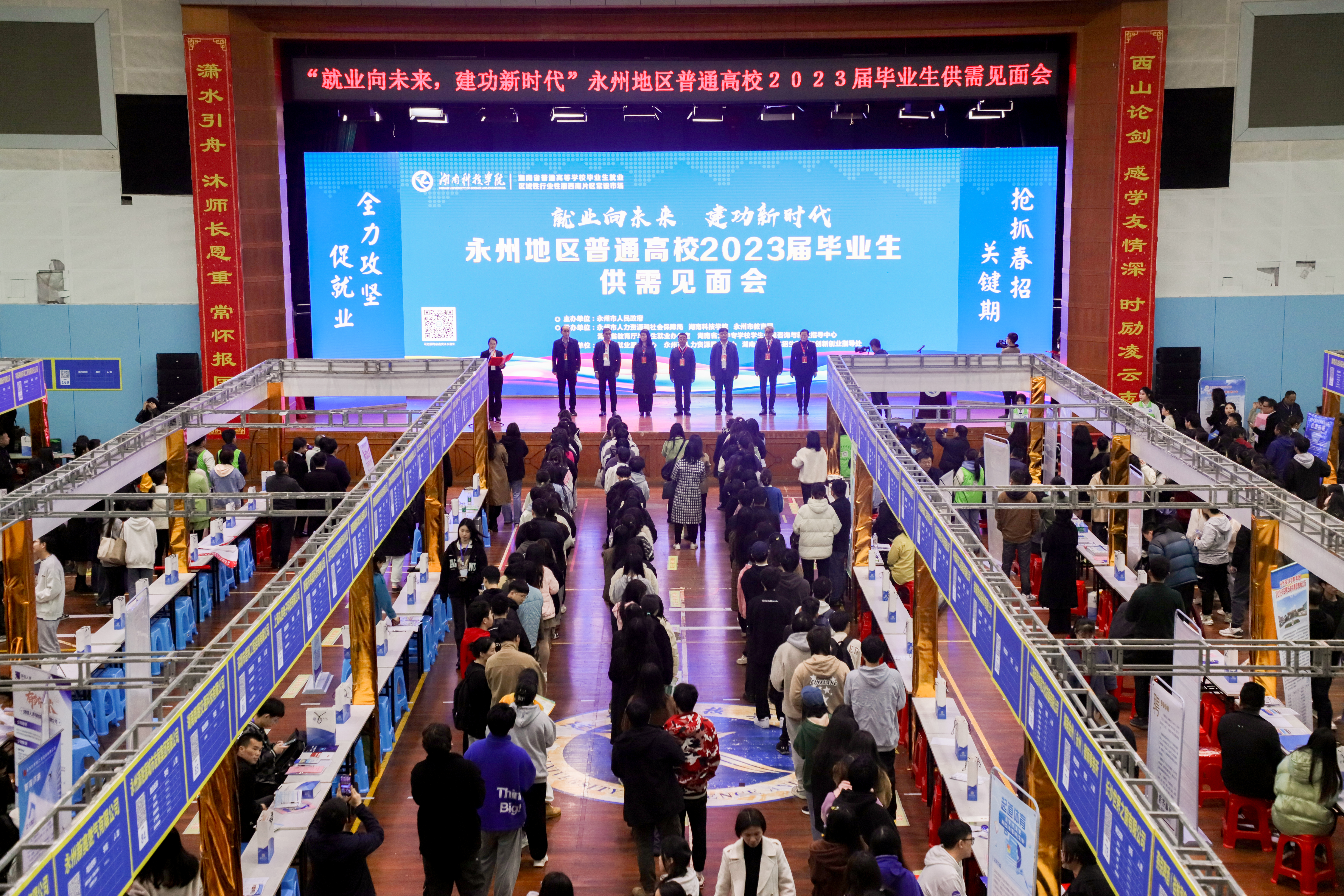 本网讯(记者 赵丹 张希玥)就业向未来,建功新时代!4月25日,由永州市人民政府主办,永州市人力资源和社会保障局、永州市教育局与我校共同承办的永州地区普通高校2023届毕业生供需见面会举行。招聘会吸引了来自省内外的180余家优质用人单位参会,为毕业生提供就业岗位8600余个。