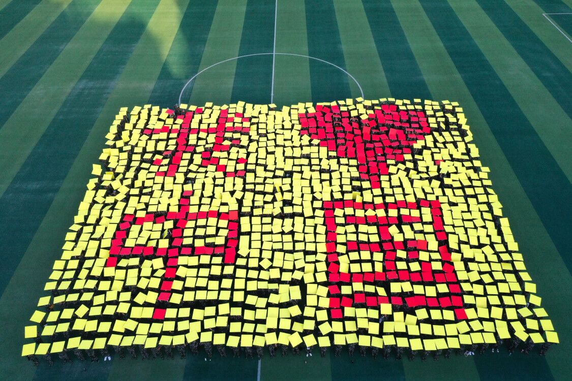本网讯 10月22日,学校举行了一场大型的“以青春之名告白祖国”活动,由1200名军训新生组成的巨型摆字方阵,通过队形变换摆出“不负青春”“不负韶华”“不负时代” “我爱中国”等字眼,表达了青年学子以青春之我、奋斗之我的贡献新时代的责任担当和爱国情怀。