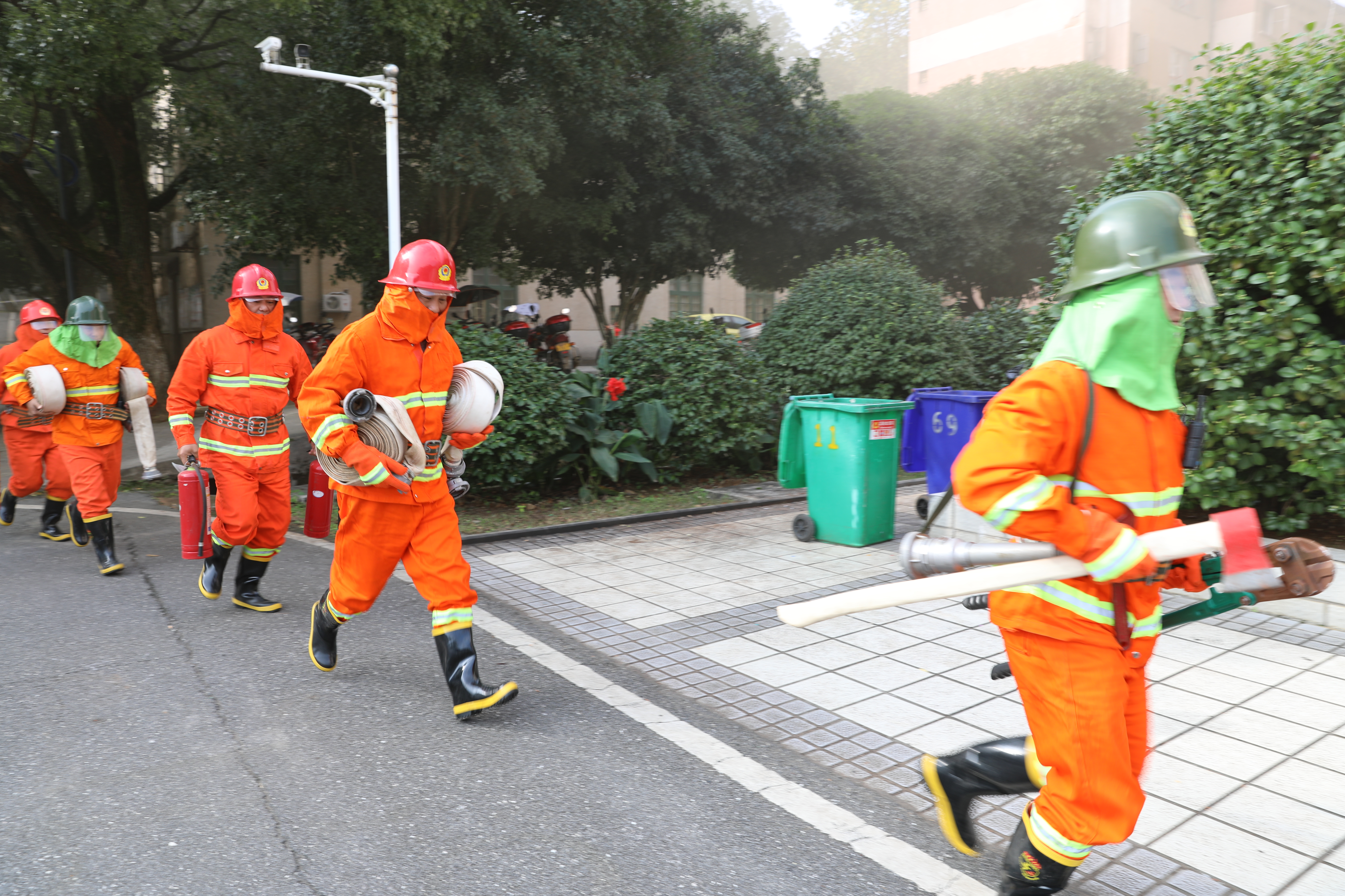 上午九点整,弘毅楼4楼实验室出现橙棕色浓烟,随即一阵急促的警报声响起,浓烟迅速蔓延,整栋楼烟雾滚滚。火情一经发现,保卫处立即组织人员赶赴各楼层进行应急疏散并拨打119火警电话,应急救护组人员在一旁待命,随时准备急救。不到一分钟的时间,只见被困学生从所在楼层的两边沿中间楼梯移动,用衣物或沾满水的湿毛巾、手帕等捂住口鼻,低弯着腰,匍匐前进,有序下楼,紧急疏散撤离至文化广场。与此同时,消防大队顺利到达现场,迅速实施营救,所有被困学生顺利脱险。