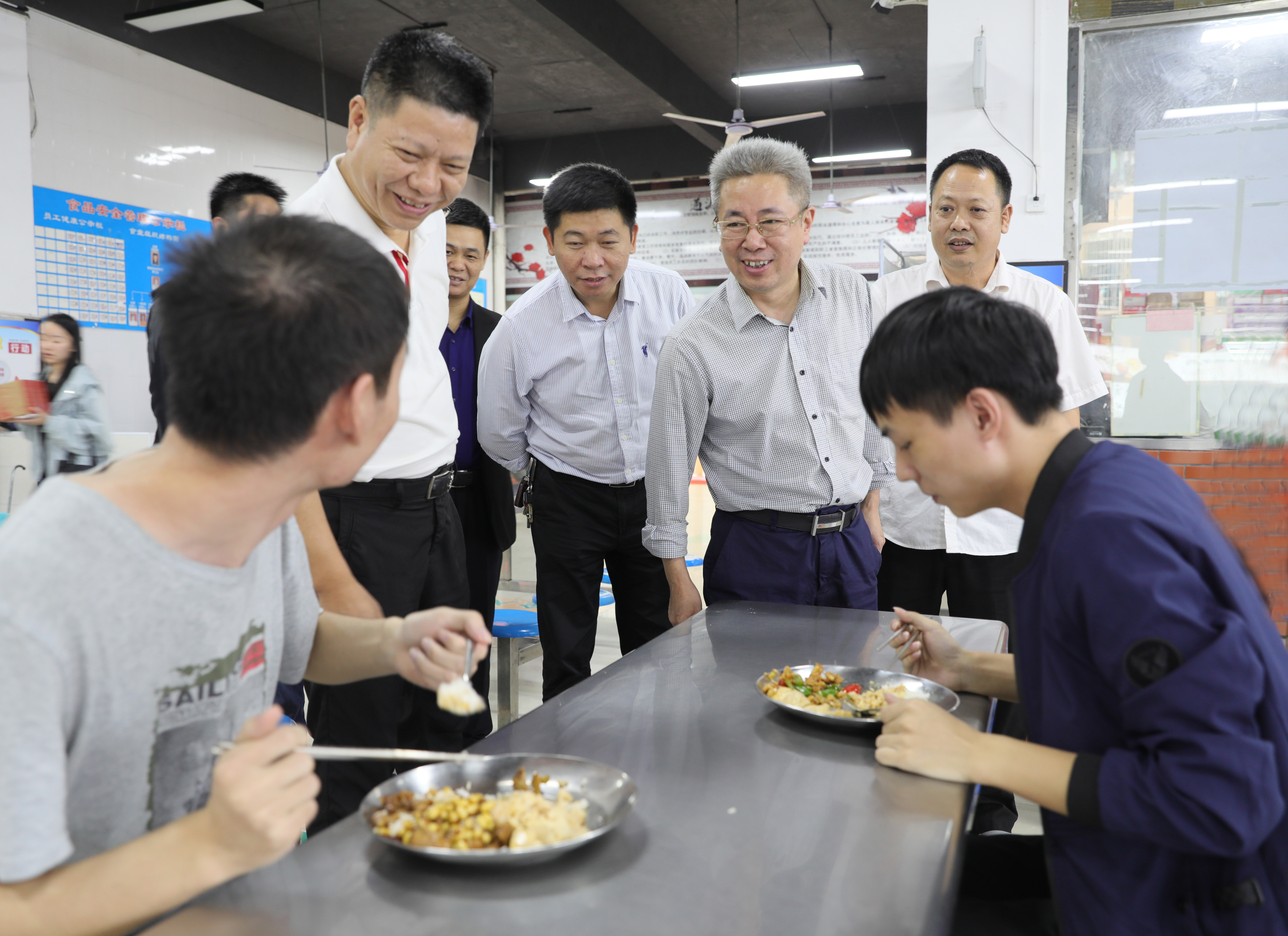 “你这份饭菜花了多少钱?”“菜的份量够不够?”“打的饭菜一定要吃完啊!”曾宝成走到餐桌前,与正在用餐的学生亲切交谈,提醒同学们要珍惜粮食,杜绝舌尖上的“浪费”。在餐具回收处,曾宝成查看了学生餐盘食物剩余情况,对一些存在食物浪费的行为进行了劝导。对于根据自身食量点菜,并吃得干净的同学,曾宝成现场给予了表扬。从检查情况看,绝大多数同学剩饭剩菜较少或没有剩余,能够实现“光盘”,但仍存在部分浪费现象。
