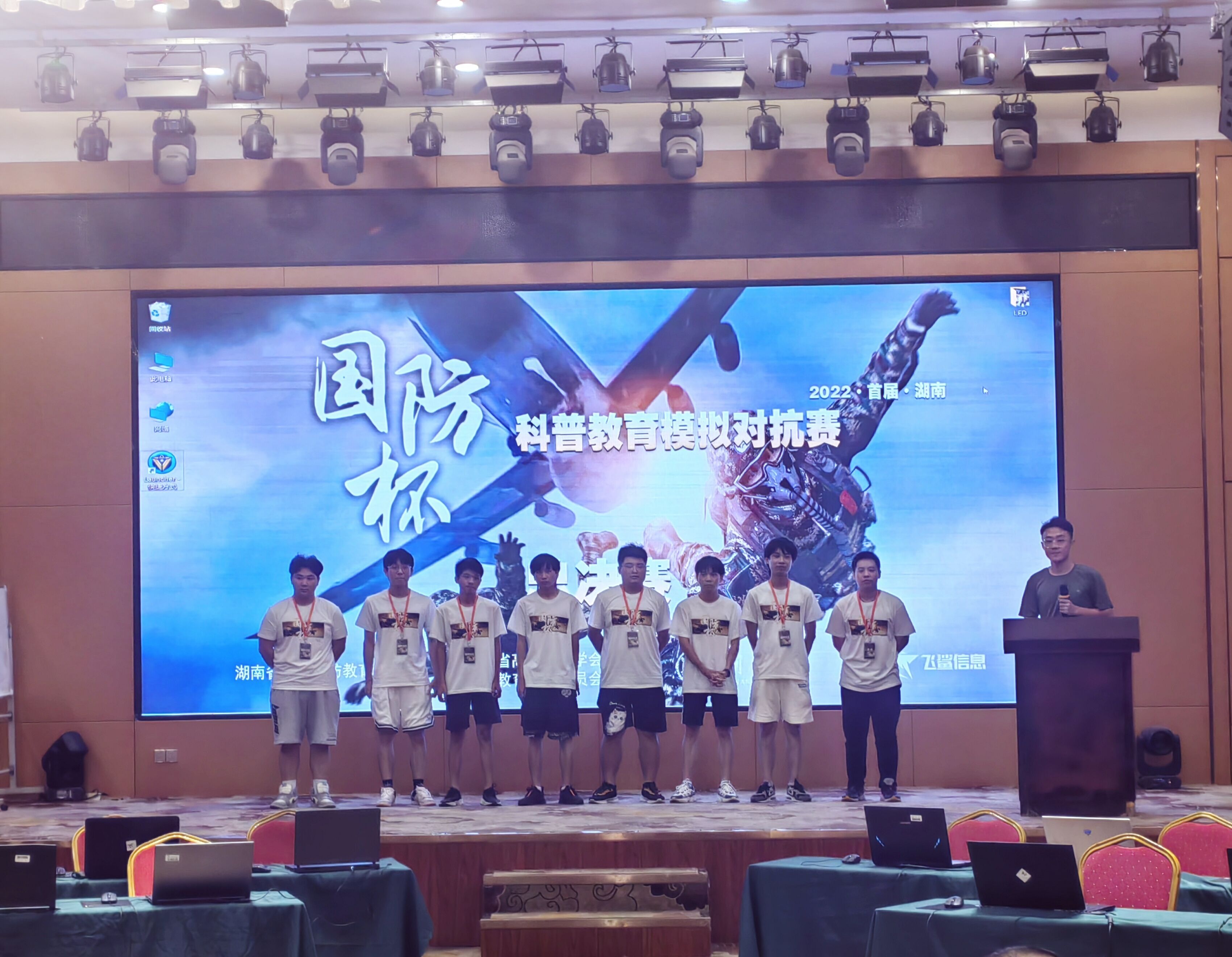 本网讯 9月17日,全国第 22 个全民国防教育日。由湖南省全民国防教育委员会办公室、湖南省高等教育学会国防教育专业委员会联合主办的湖南省首届“国防杯”科普教育模拟对抗赛总决赛在湖南军联国防教育基地举行。我校土木与环境工程学院测绘工程2001班的陈思宇、马占达、许渠成、邓汉、宋峤、成兵、陈劲才、牛鑫博八位同学组成的“ikun战队”获得总决赛冠军。
