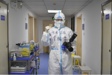 “戴着眼镜,再加上一层护目镜,两层镜片都有可能起雾。按下快门,更多地就是凭自己的直觉。”身穿防护服的辜鹏博透过缓冲间的玻璃,用无声的镜头语言拍下现场图片,留下难忘而震撼的抗疫时刻。大年初一,他放弃与家人团聚,毅然前往“新冠肺炎”定点医院娄底市中心医院跟班采访。2月16日起,他再次主动请缨,赶赴湖北黄冈战疫一线,真实记录一线医护人员守护生命的执着与忘我。