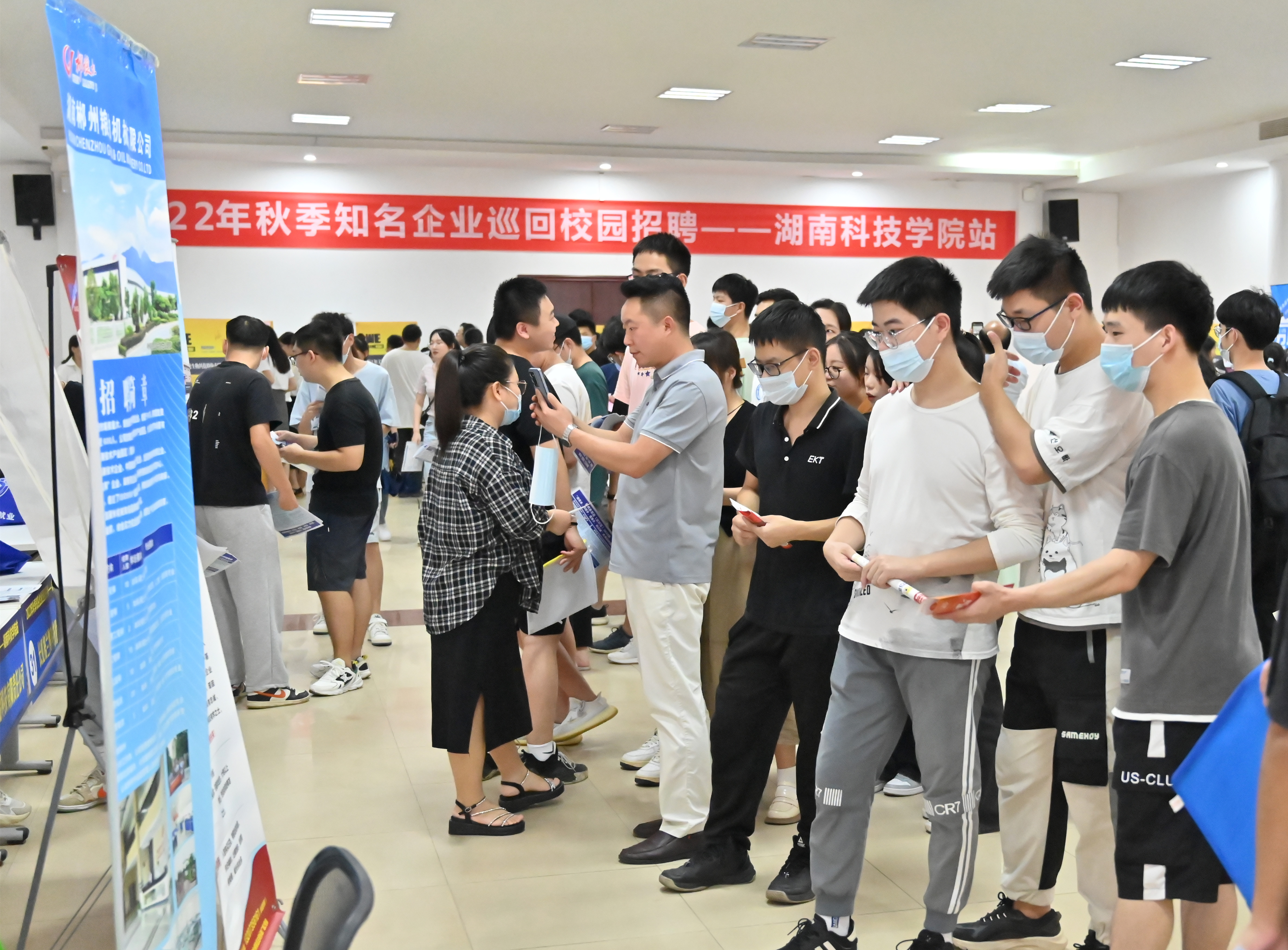 本网讯 9月27日下午,2022年秋季湖南知名企业巡回校园招聘会在我校举行,本次招聘会共吸引了中国建设银行湖南省分行、中国移动通信集团湖南有限公司、广东领益智能股份有限公司等41家用人单位参会,提供就业岗位2600余个,812名毕业生到现场参加竞聘。