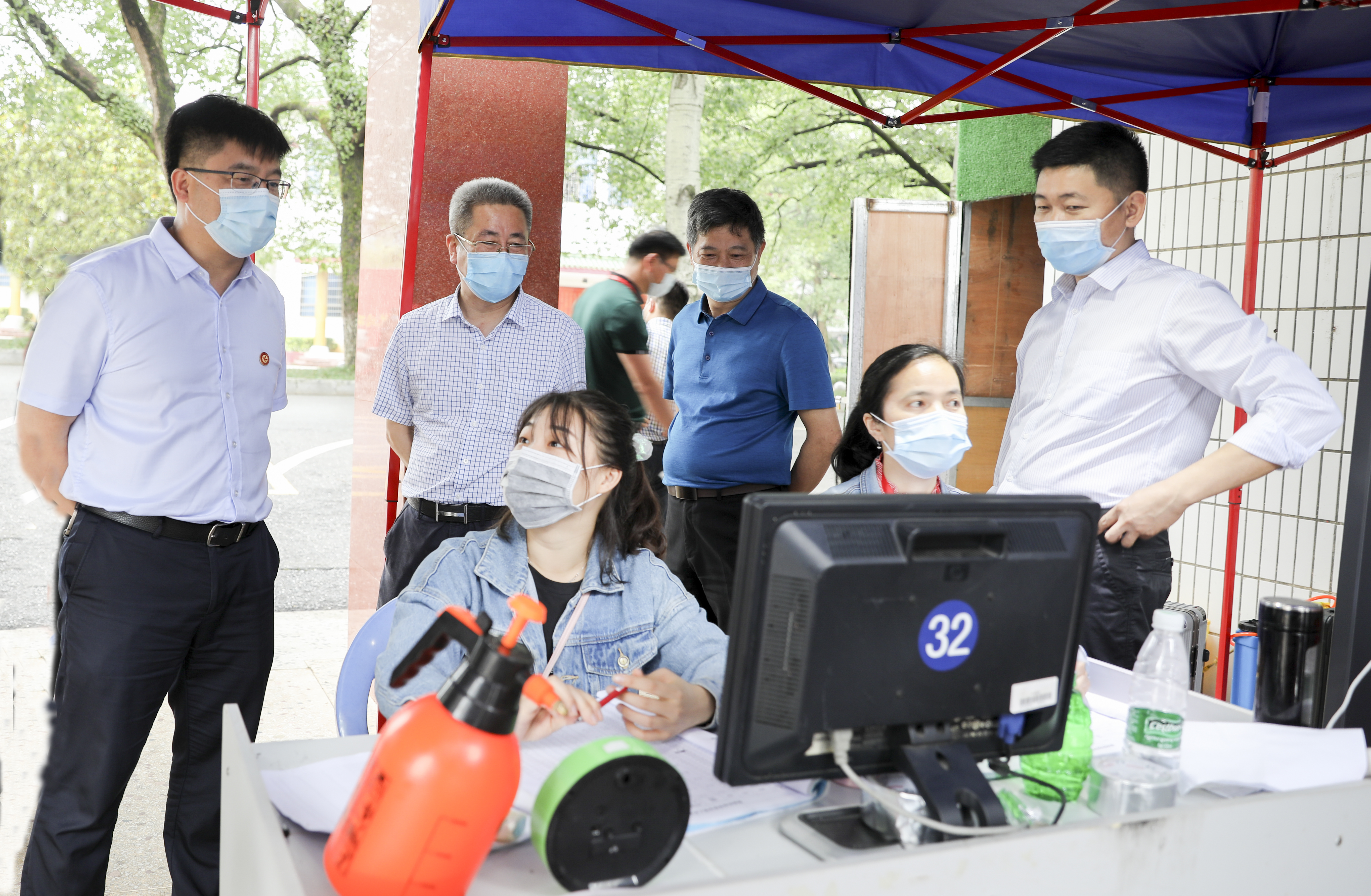 党委书记曾宝成、校长李钢等校领导在学校东大门检查开学工作。
