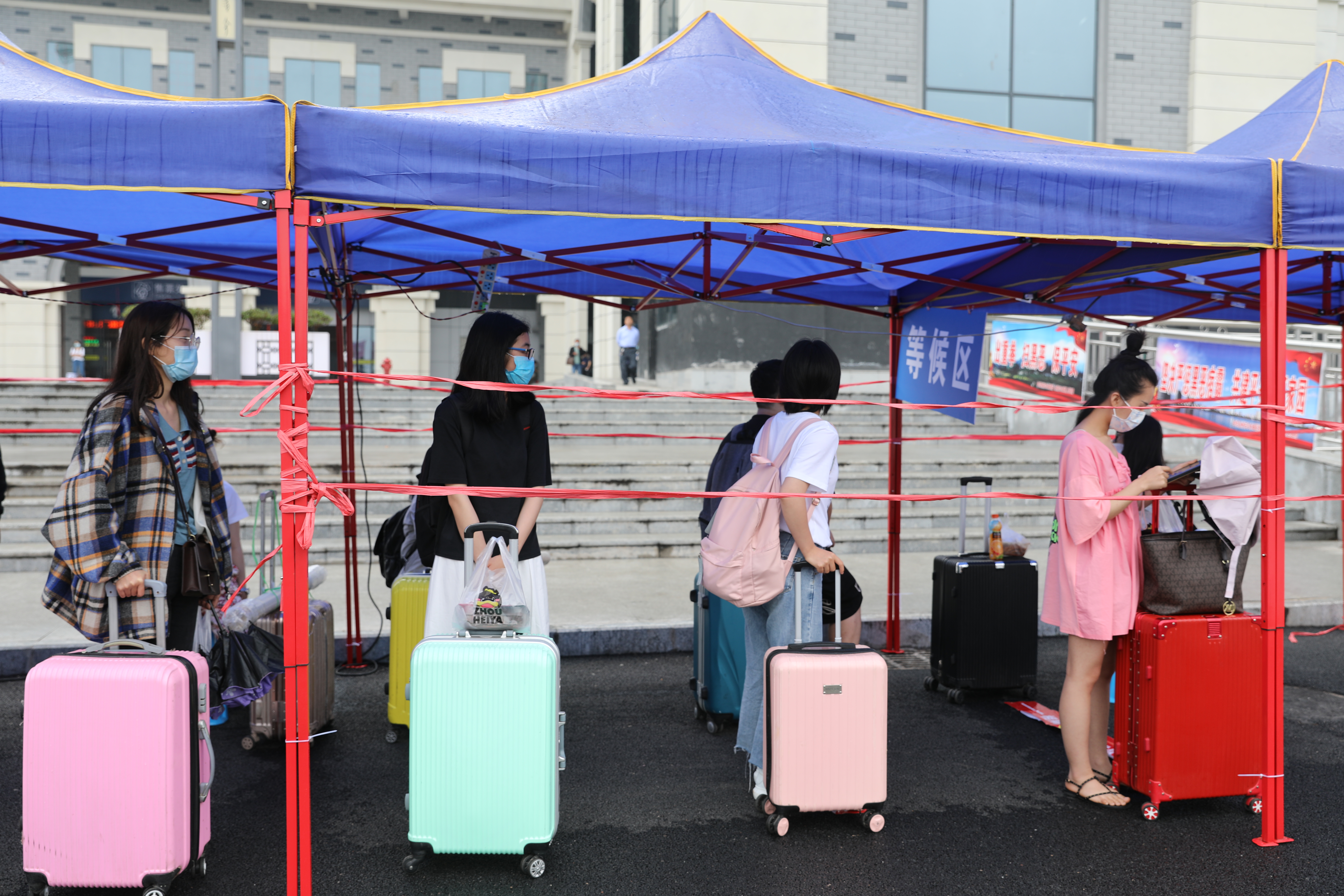 本网讯 5月21日,我校首批学生返校复学。在永州火车站、汽车站,学校均设立了接站点,集中统一接送学生直接入校报到。 身份核验、信息登记、测体温、行李消毒、……经一系列检测流程,同学们方可进入校园。 据了解,本次共有近3000名学生返校,均为预科生和毕业年级学生。