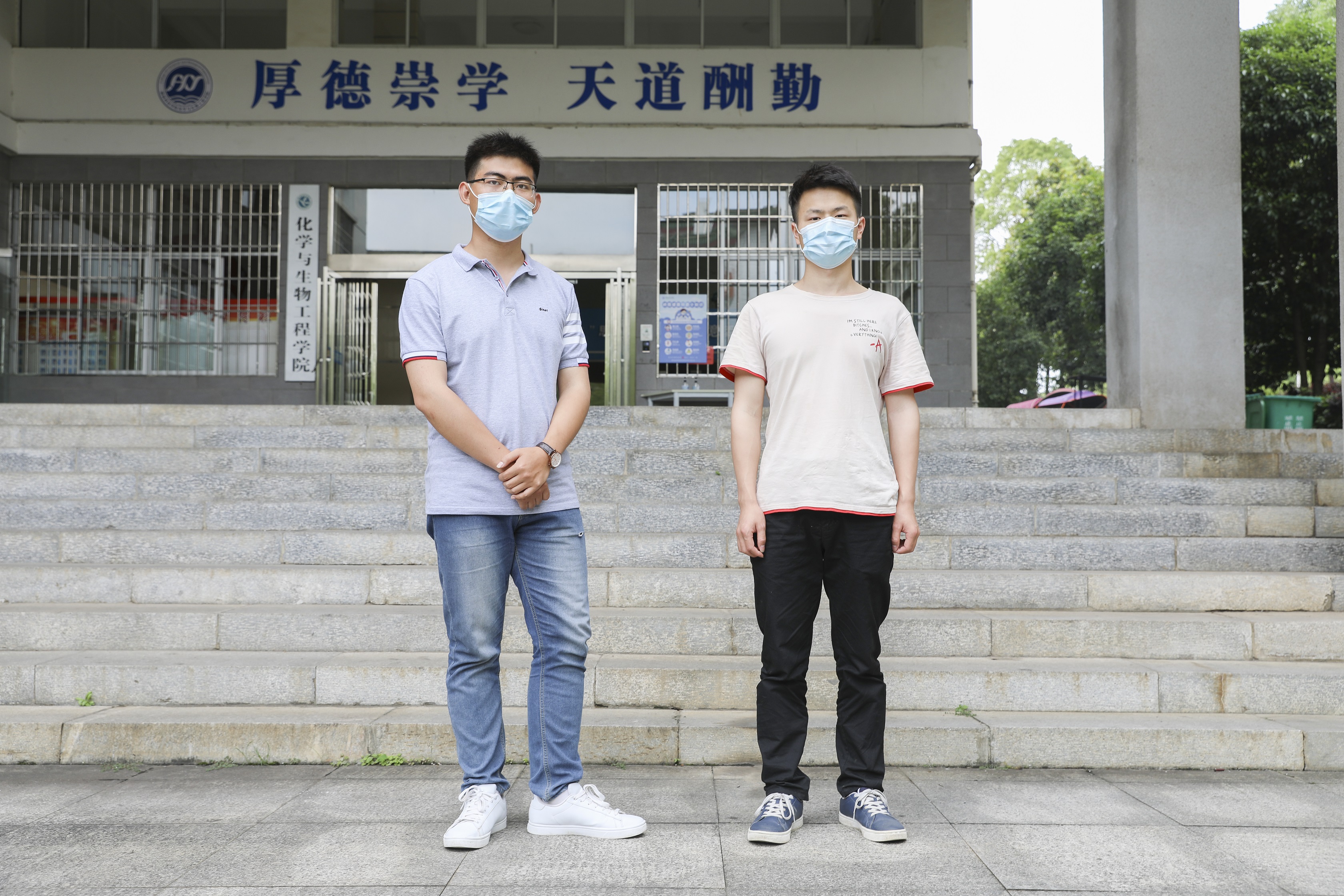 化学与生物工程学院材料化学1601班邓集辉和张亚军约定一块返校,在他们看来,整个入校流程安心流畅、安全高效,从酒精消毒到身份核验到体温检测,全程没有耽误一分钟,各个环节都没有落下。他相信在学校充足的防控准备下,每一位返校学子都能在这温暖的家中,做到学习、防疫两不误。邓集辉说,“感谢学校的暖心举措,希望我们都能够在这个光明灿烂的日子里快乐毕业!”