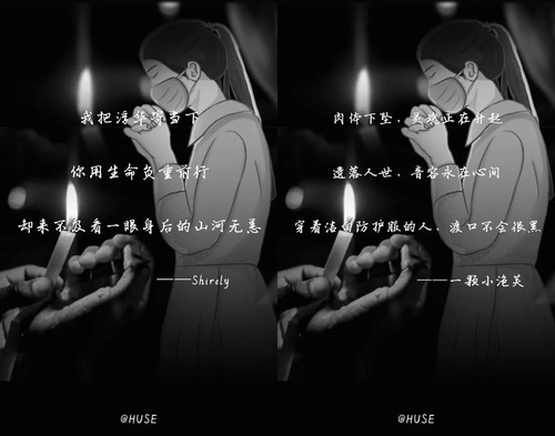 两个多月前,新冠肺炎疫情来势汹汹。在以习近平同志为核心的党中央坚强领导下,全国上下,众志成城,打响疫情防控阻击战,医务人员、基层党员干部和广大群众顽强拼搏在抗击疫情第一线。那些在疫情中不幸逝世的同胞们,他们的生命永远定格在了这场没有硝烟的战争。