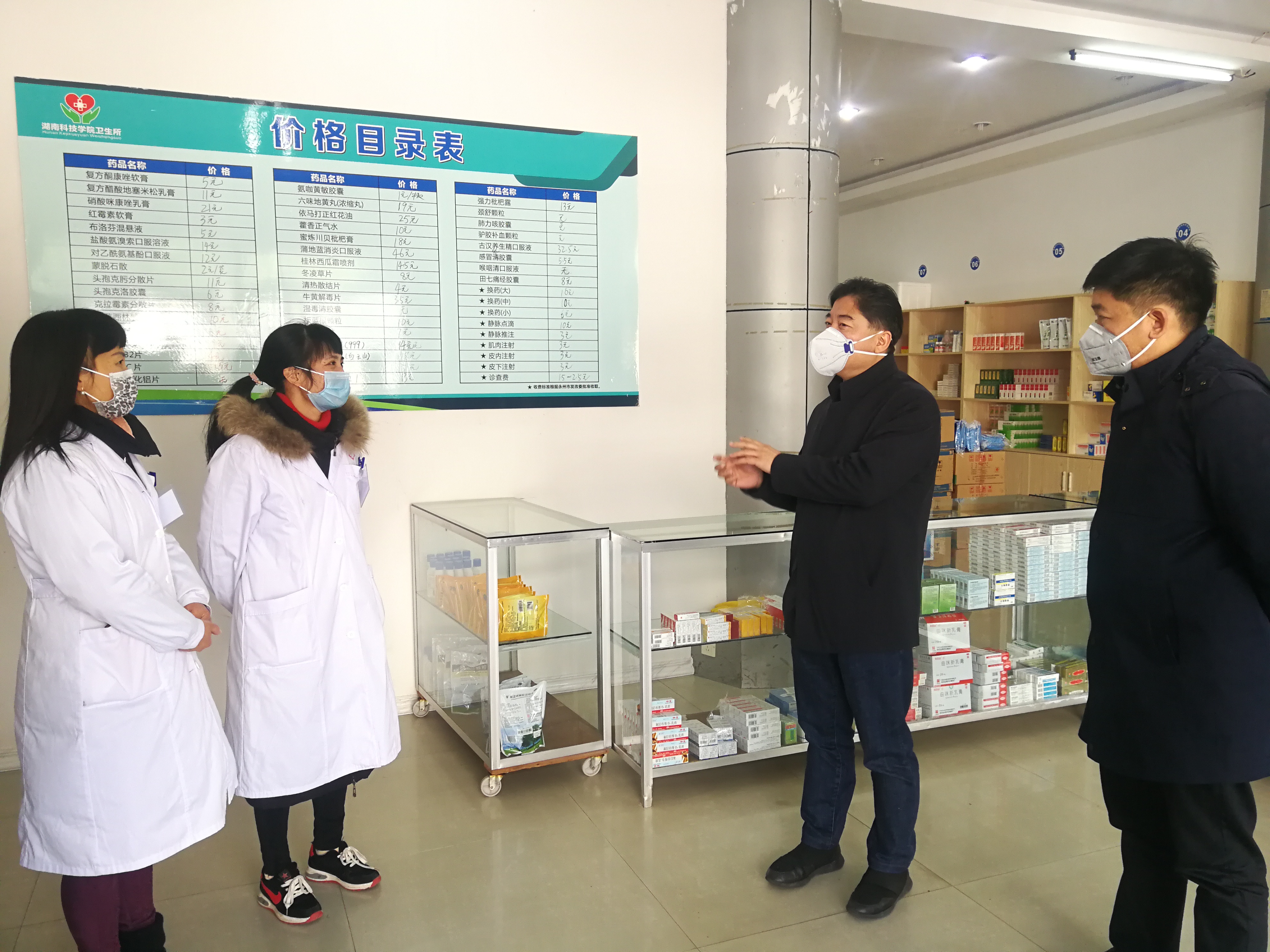 本网讯 1月30日上午,党委委员、纪委书记、省监委驻校监察专员彭立威,纪委副书记、监察处长黄栋等现场督导检查我校新型冠状病毒感染的肺炎疫情防控工作。