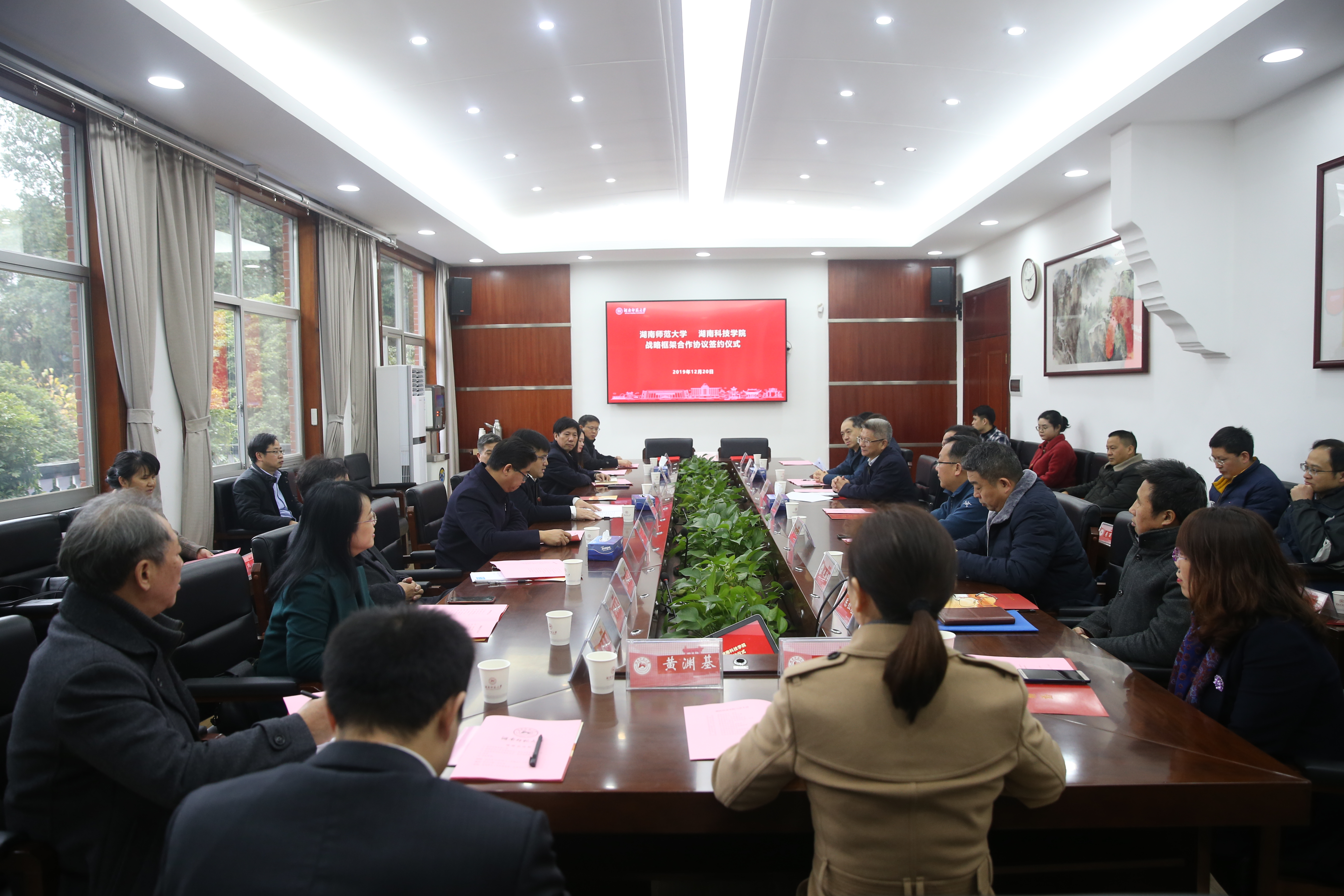 湖南师范大学相关负责人,我校发展规划与学科建设处、科技处、教务处、马克思主义学院、人文与社会科学学院、外国语学院等相关负责人参加仪式。