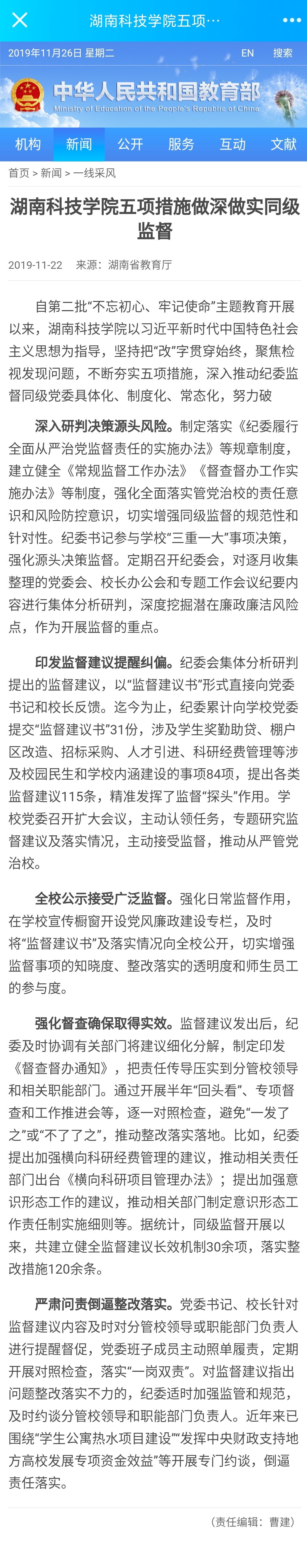 本网讯 11月22日,教育部官网以“安博站官网登录入口_安博(中国)五项措施做深做实同级监督”为题,推介我校做深做实同级监督工作经验。