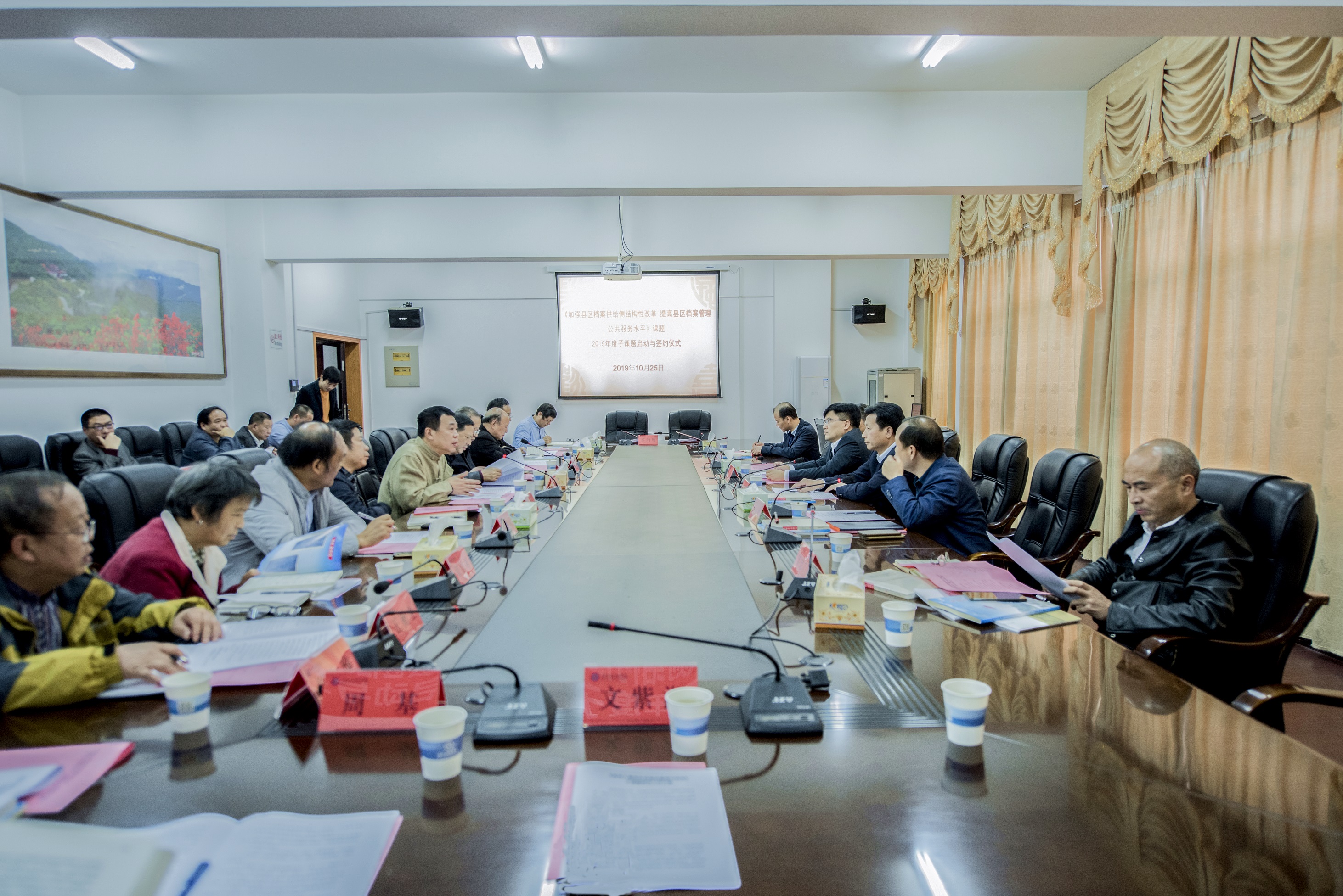本网讯 10月25日,零陵区《加强县区档案供给侧结构性改革,提高县区档案管理公共服务水平》课题2019年度子课题启动与签约仪式在学校举行。校长李钢,党委副书记唐艳明,零陵区委书记唐烨参加。本次活动由零陵区课题研究领导小组组长、区委常委、区委办主任彭江辉主持。课题组所有研究专家参加活动。