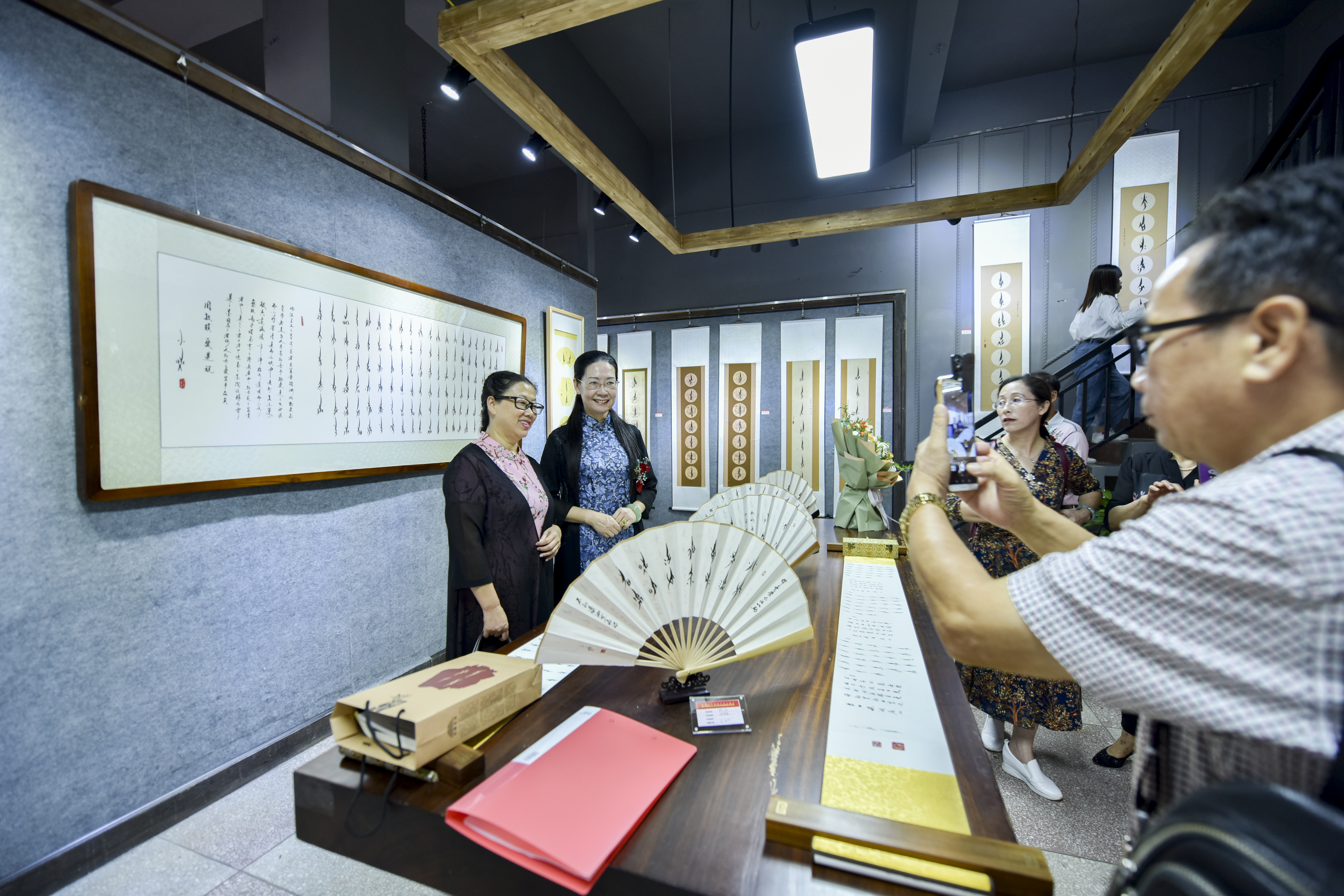 本网讯 品鉴作品,感受艺术家笔墨中饱含的家国情怀;挥毫泼墨,直抒礼赞新中国的美好心声。9月28日上午,庆祝新中国成立七十周年欧小松女书书法作品展暨新书发布会成功举办,副校长宋宏福、李常健,著名女书传承人李爱莲以及永州文艺界人士和永州市民前往观展。