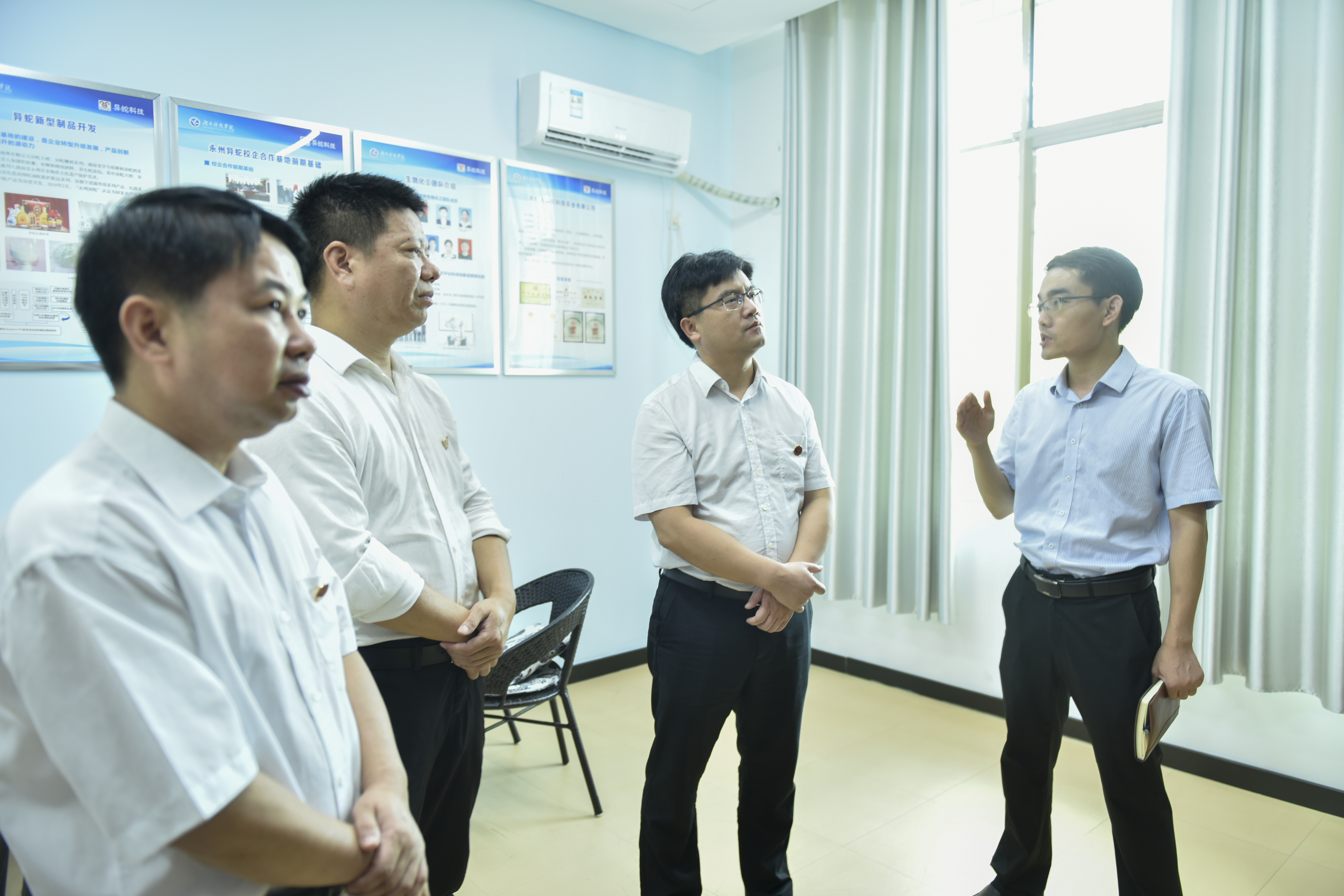 在走访中,李钢还与“永州异蛇新型制品开发与利用”、“瑶山七彩”等项目负责人深入交流,了解项目的运营发展情况,对创新创业学院的建设和大学生创新创业工作取得的成绩予以肯定和赞许,并对今后的大学生创新创业工作提出了建议。