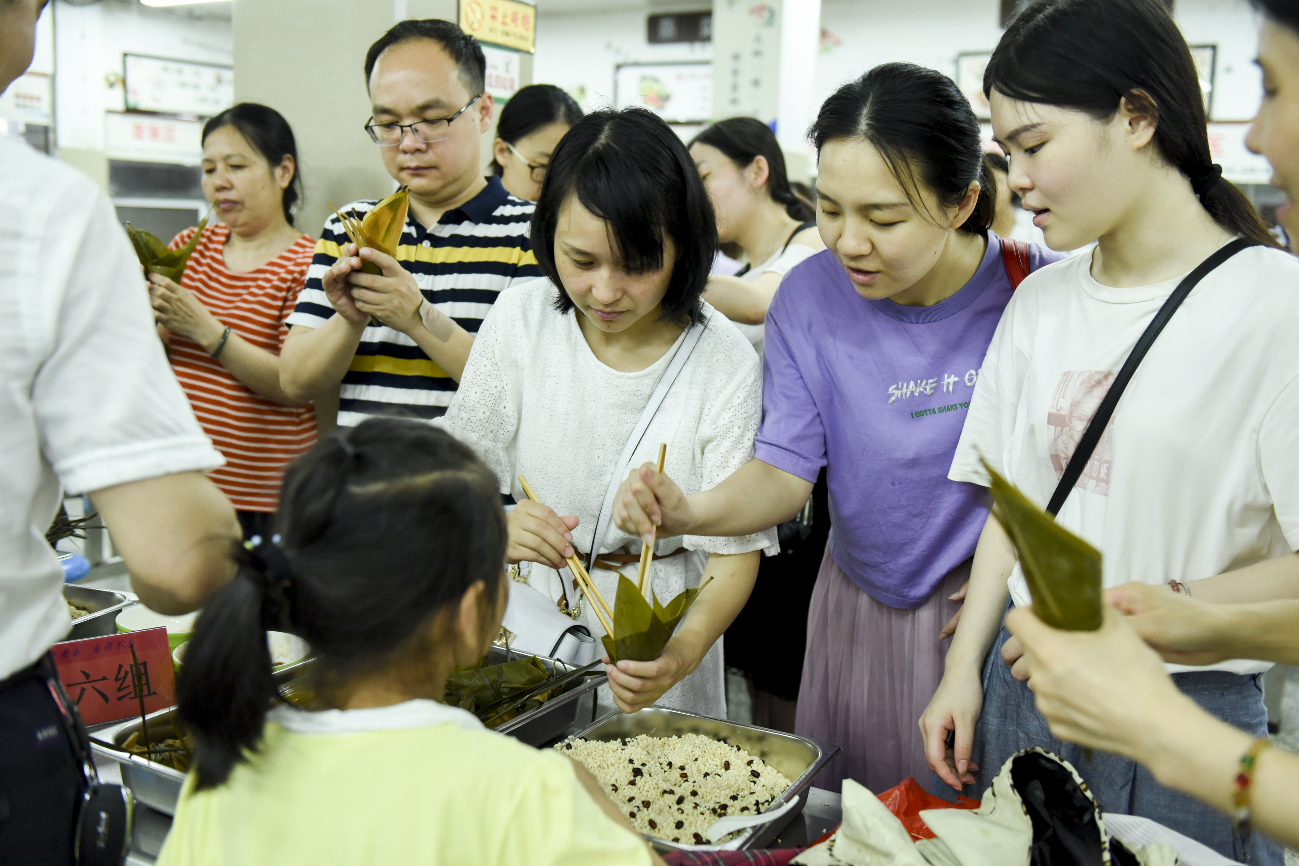 6月6日,安博站官网登录入口_安博(中国)食堂,教职工在包粽子。当日,安博站官网登录入口_安博(中国)机关分工会举办端午节包粽子体验活动,教职工们自购食材,一起包粽子、煮粽子、吃粽子,增进感情交流,感受民俗文化,共度端午佳节。