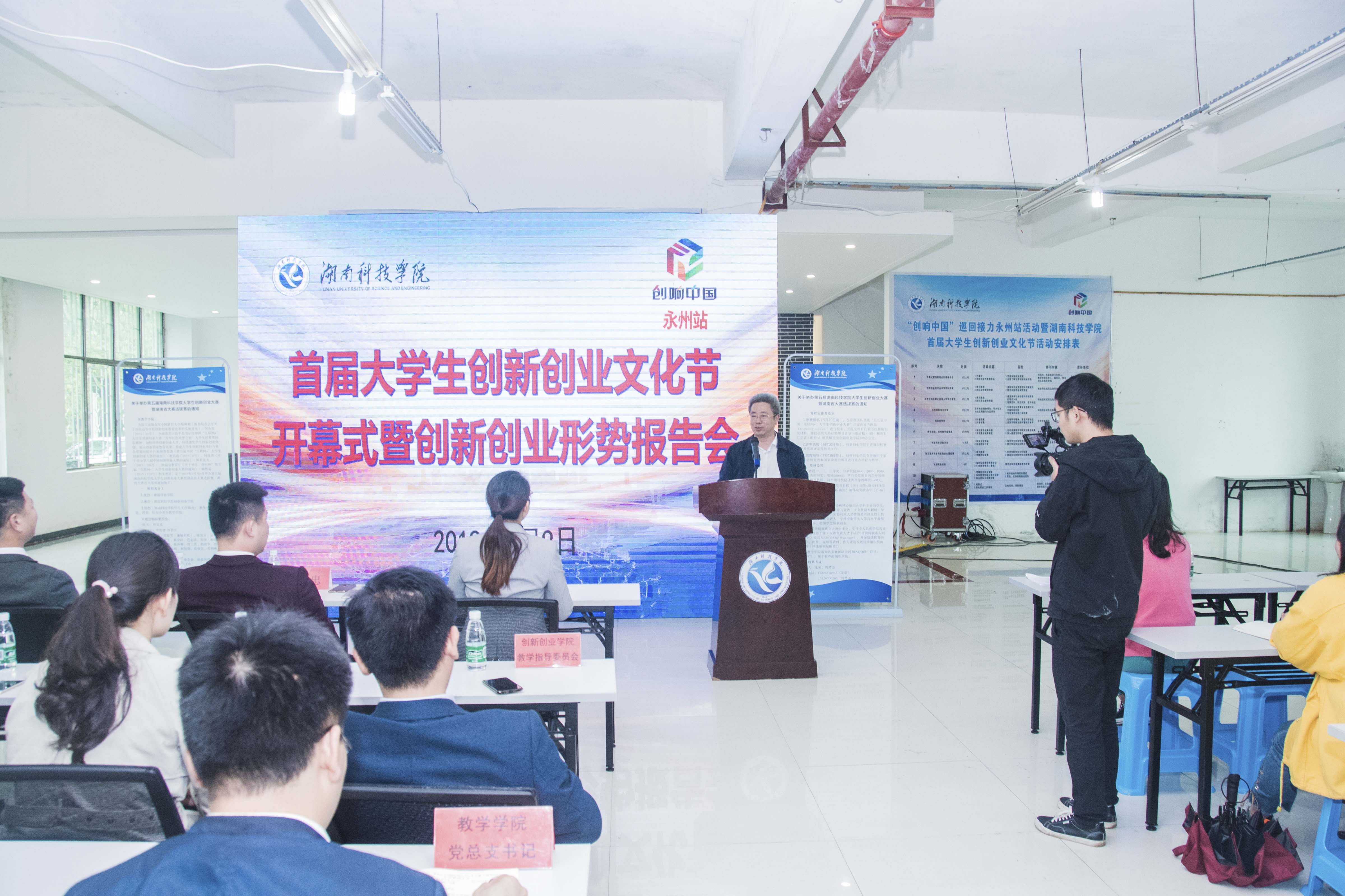 本网讯 5月9日,“创响中国”巡回接力永州站活动暨安博站官网登录入口_安博(中国)首届大学生创新创业文化节开幕式暨创新创业形势报告会在校举行。党委书记、校长曾宝成,副校长李常健、程智开,各教学学院、相关职能部门负责人,创业就业指导教师、辅导员以及大学生就业创业促进协会成员参加。开幕式由李常健主持。
