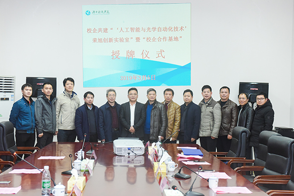 曾宝成在仪式上致辞。他说,当今时代是高新科技迅速发展的时代,未来社会是人工智能大兴盛行的社会,我校与荣旭自动化科技有限公司共建“‘人工智能与光学自动化技术’荣旭创新实验室”,并正式挂牌“校企合作基地”,为学校转型发展和人才培养搭建了新的平台,标志着学校校企合作办学和实验室工作迈向了新台阶,将进一步提高学校教育教学工作水平和人才培养质量,为地方经济发展提供更加坚实、可靠、有效的技术和智力支持。学校将以此次实验室的建立和校企合作基地挂牌为契机,进一步转变发展模式,进一步提升学校的办学水平和人才培养质量,推动学校内涵式发展,为服务经济社会发展做出更大贡献。
