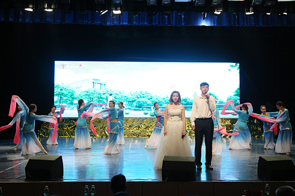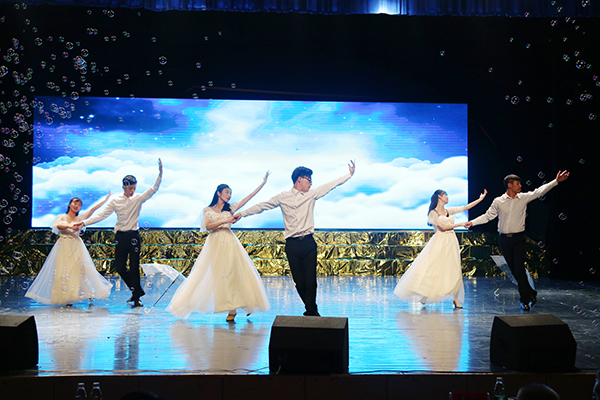 整场晚会精彩纷呈、高潮迭起,自始至终洋溢着浓浓的欢乐氛围,给现场师生带来一场非凡的视听盛宴。其中,由科技处处长杨金砖所作的《安博站官网登录入口_安博(中国)赋》以经典传唱的方式演绎,带领观众品读经典作品;吉他协会自主填词、谱曲,现场弹唱《如果还有明天》,令现场沉醉其中;灵犀书法协会、旅游管理协会、竹笛协会共同表演的《云水禅心》,将茶艺、书法、竹笛、古筝、古曲、汉服等诸多传统文化元素融为一体;表演协会的T台秀以脑洞大开的设计和新潮的时尚再次将场上气氛拉向高潮。为展示安博站官网登录入口_安博(中国)学生社团联合会杨梓塘小学义教项目成果,晚会现场还邀请了杨梓塘小学的小朋友们进行经典国学文艺表演。