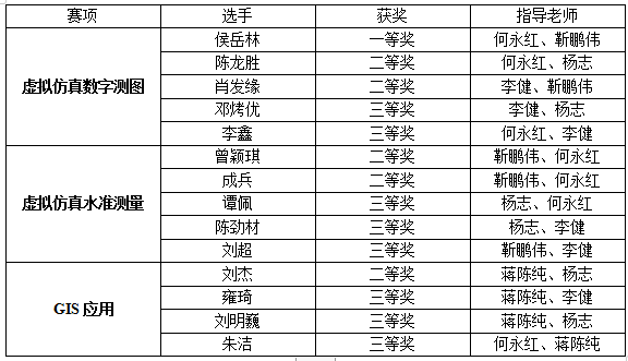 本网讯 近日,由湖南省教育厅主办的湖南省第四届测绘综合技能大赛在湖南城市学院落下帷幕,我校土木与环境工程学院学子再创佳绩,荣获虚拟仿真数字测图项目一等奖1项,二等奖2项,三等奖2项;虚拟仿真水准测量项目二等奖2项,三等奖3项;GIS应用项目二等奖1项,三等奖3项。