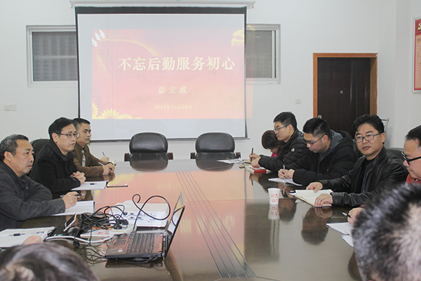 本网讯 11月28日下午,为进一步推动学习宣传贯彻党的十九大精神,纪委书记彭立威以“不忘后勤服务的初心”为题,为后勤服务总公司党员干部讲党课。党课由后勤服务总公司党总支副书记、副总经理李家年主持。