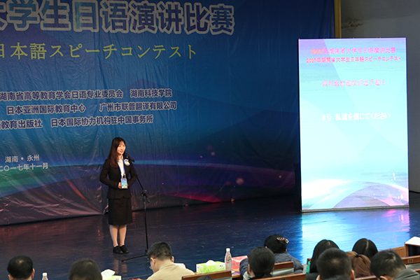 本网讯 11月11日,由湖南省教育厅主办,我校与湖南省高等教育学会日语专业委员会共同承办的2017年湖南省大学生日语演讲比赛在我校尚美楼演播厅举行。省教育厅副厅长葛建中,省教育厅高教处处长曾力勤,省日语专业委员会会长张佩霞,省教育厅高教处副处长杨承玖,省教育厅高教处调研员张琳,我校校长曾宝成,副校长李常健出席开幕式。