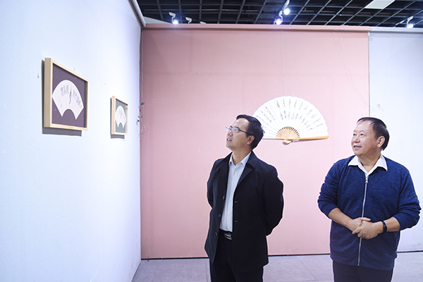 本网讯 10月12日下午,党委书记陈弘来到美术与艺术设计学院美术馆,饶有兴致地观看欧小松女书书法展。