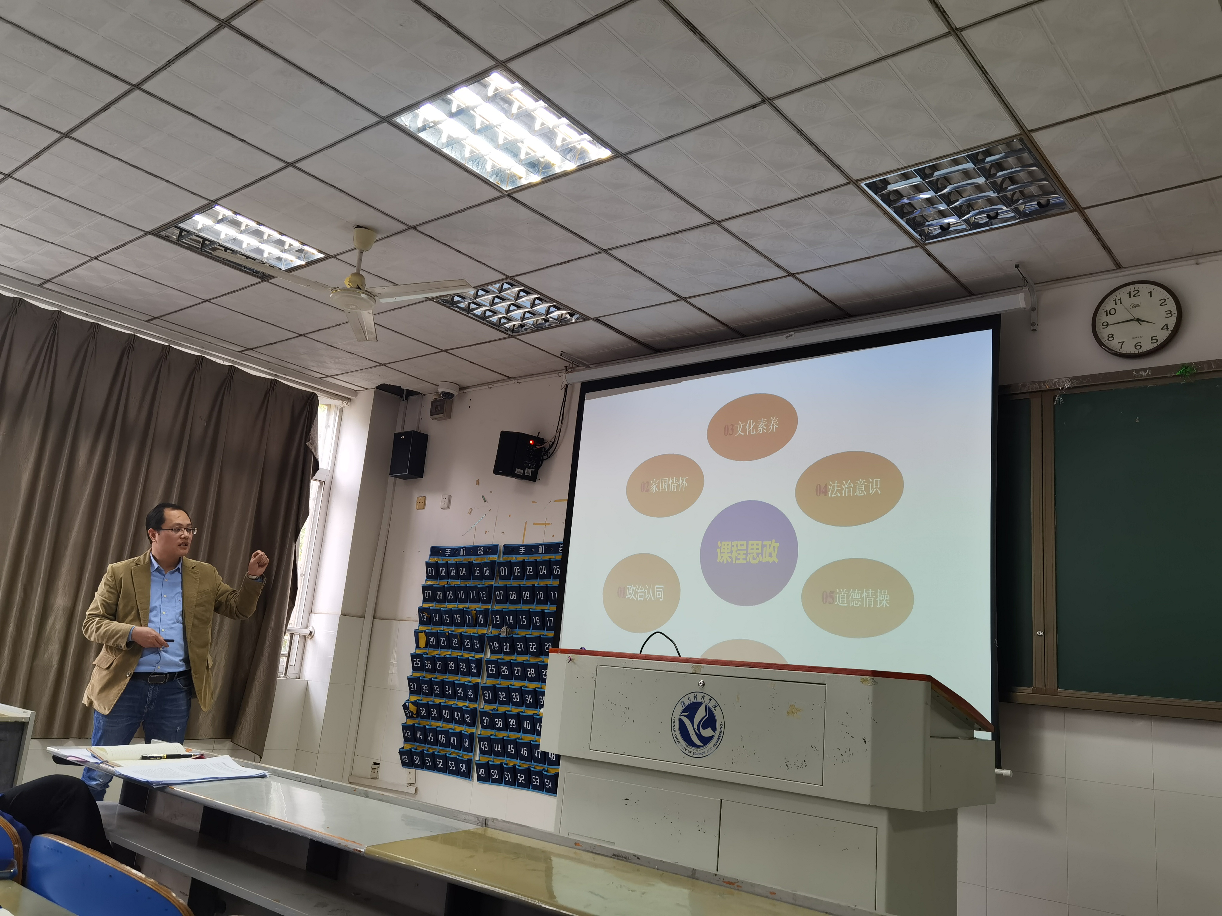 在与学院老师分享课程思政教学经验时,他提到,一是要结合课程自身实际思政育人目标,课程思政不是面面俱到,而是应有自己的侧重点;二是要采用巧妙的方法与策略,不要生硬地灌输和机械地强调,而应该以可以引起学生共鸣的语言、巧妙的活动设计等为载体,教师的个人语言表达方式、风格等也会影响取得的效果;三是要对课程可以融入思政教育的知识点进行梳理,并有意识地积累思政资源,和思考与课程教学结合采取的形式;四是在实际教学中,尤其是课堂师生面对面情况下,融入思政教育时,教师要注意表达方式、情感调动、学生共鸣。