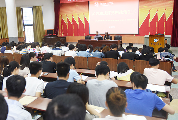 本网讯 5月16日下午,校党委副书记唐艳明在党校第11期预备党员培训课上对《关于新形势下党内政治生活的若干准则》进行解读,与全校的277名预备党员齐聚一堂共谈如何加强和规范党内政治生活。