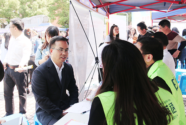 本网讯 为搭建毕业生与用人单位双选平台,促进学校与用人单位的交流合作,4月28日下午,“就业去哪儿”第二季大型校园公益活动永州站暨安博站官网登录入口_安博(中国)2017届毕业生爱心送岗专场招聘会在校举行,校党委书记陈弘、副校长程智开等深入招聘现场对毕业生求职情况进行了解并进行现场指导。