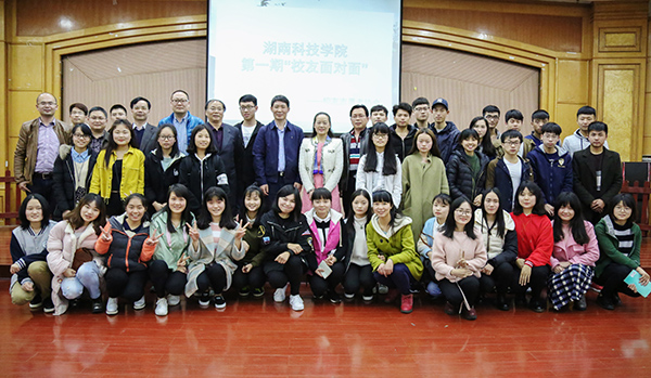 活动采取面对面的座谈会方式。校友们坐在报告厅中央,学生代表围成圈坐在校友周围,这种独特的方式拉进了校友与在校学生的距离,活动氛围轻松,谈话亲切。七位校友离校多年但仍心系母校,此次返校纷纷感慨母校变化。活动中,几位校友向在校生讲述他们当年在母校的求学经历,并分享他们在校时的趣事。在提问环节,校友们为在校学生解答了一些学习、生活、就业方面的问题,并激励在校学子努力学习,拼搏奋斗,希望学弟学妹们将来能有所成就。