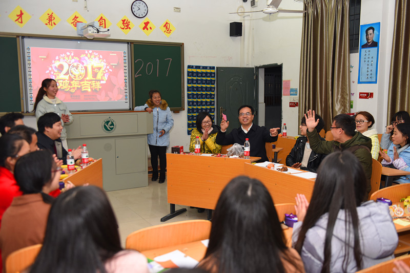 本网讯 2月14日晚,校党委书记陈弘来到理学院数应1501班参加该班2017年的第一次班会,与师生们共同展望2017,给师生们送去新春的祝福和美好祝愿。这是他第四次来到该班。