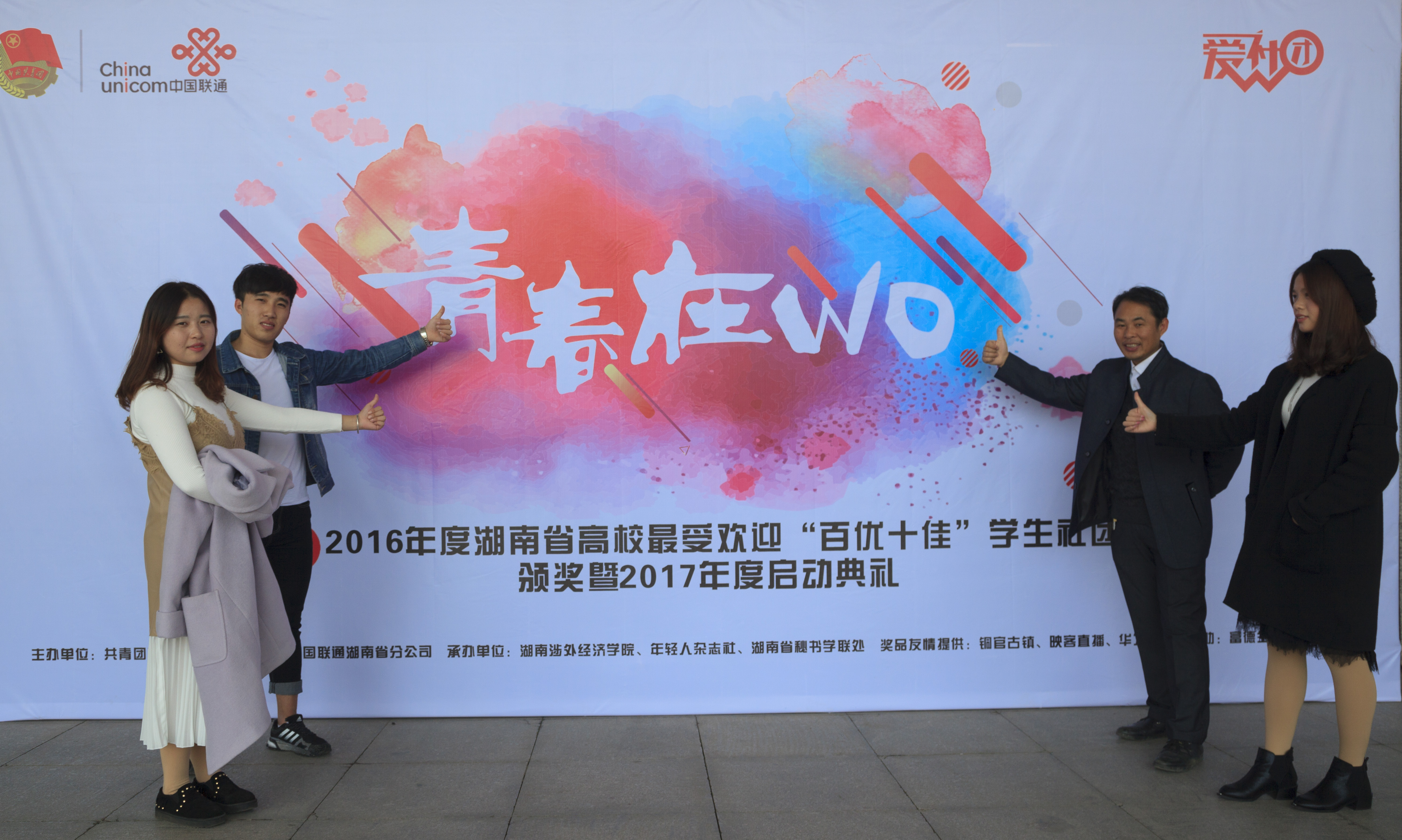 本网讯 近日,由共青团湖南省委宣传部、学校部主办的“WO爱社团”2016年度湖南省高校最受欢迎“百优十佳”学生社团颁奖典礼在长沙举行。湖南省各大高校参选社团中有10个社团获取“十佳”称号,100个社团获取“百优”学生社团称号,我校绿色潇湘环保协会从全省400个社团中脱颖而出,获得湖南省高校“十佳学生社团”称号,协会指导老师胡克坚荣获“最佳指导老师奖”,会长漆盈荣获“十佳会长奖”。同时,我校大学生外语协会、风荷艺术团、无线电协会荣获“百优”学生社团。