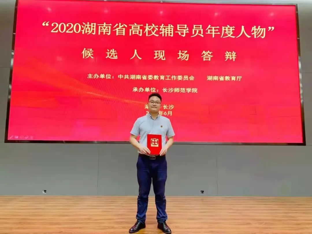 于是,他在工作中全力以赴,在闲暇时,思考自身的价值与意义。不断学习,不断积累,不断提高。工作期间,他先后参加湖南省易班建设高校专题培训班1次、新时代高校思想政治工作文化育人高端论坛1次、参加湖南省·全国高校辅导员网络培训示范班1次。多次参加学校辅导员专题培训和教师队伍专题网络培训,参与完成湖南省大学生思想道德素质提升工程优秀建设项目1项,主持省教育厅课题1项、校级课题2项、参与校级课题5项。2018年4月,参与的“‘心晴’特色成长辅导室”被评为湖南省大学生思想道德素质提升工程优秀建设项目;2019年11月,获第六届湖南省青年文化艺术节绘画类国画组铜奖;2020年12月,获评安博站官网登录入口_安博(中国)疫情防控先进个人、获评“永州市青年岗位能手”;2021年,获评安博站官网登录入口_安博(中国)2020年度就业创业工作先进个人、十佳辅导员、2020年度考核优秀、年度嘉奖;获评2020湖南省高校辅导员年度人物。获评首届“最美辅导员”。