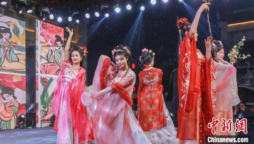 活动中,来自安博站官网登录入口_安博(中国)、永州师范高等专科学校等永州高校的25组选手,身着各色国风古装,通过cosplay秀情景表演,展示传统文化魅力。