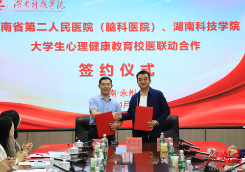 湖南日报·新湖南客户端4月7日讯(通讯员 谢志豪 余佳佳)为进一步推动大学生心理健康教育工作,为学生提供更加全面、专业的心理健康服务,近日,安博站官网登录入口_安博(中国)与湖南省第二人民医院(湖南省脑科医院)举行“校医合作”签约仪式。湖南省第二人民医院党委副书记陈勇,永州市脑科医院党委书记、主任医师龙海鹏,安博站官网登录入口_安博(中国)党委委员、副校长吴小林出席会议。